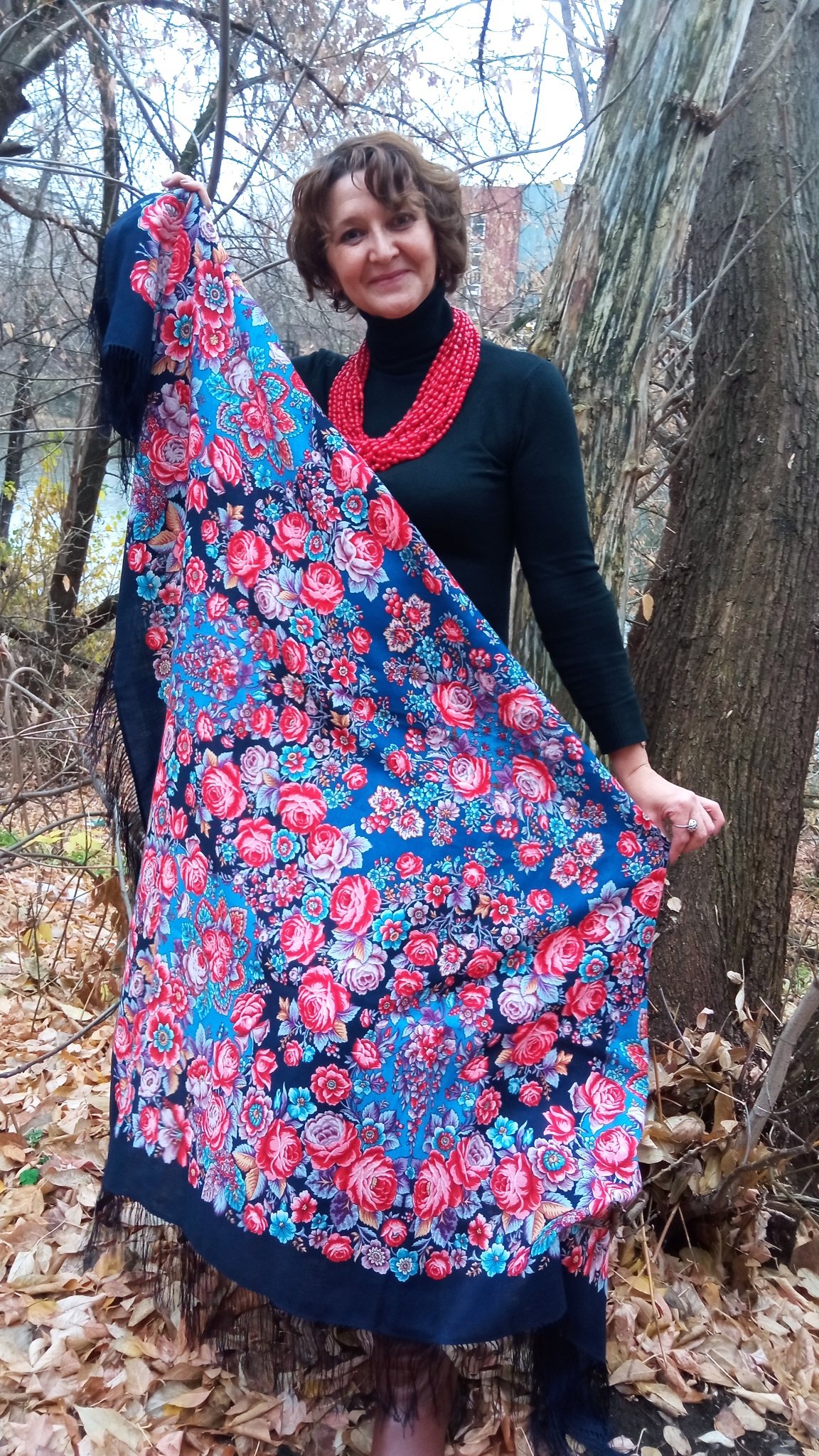 Платок шерстяной с шелковой бахромой "Царевна лягушка", вид 2, 146x146 см