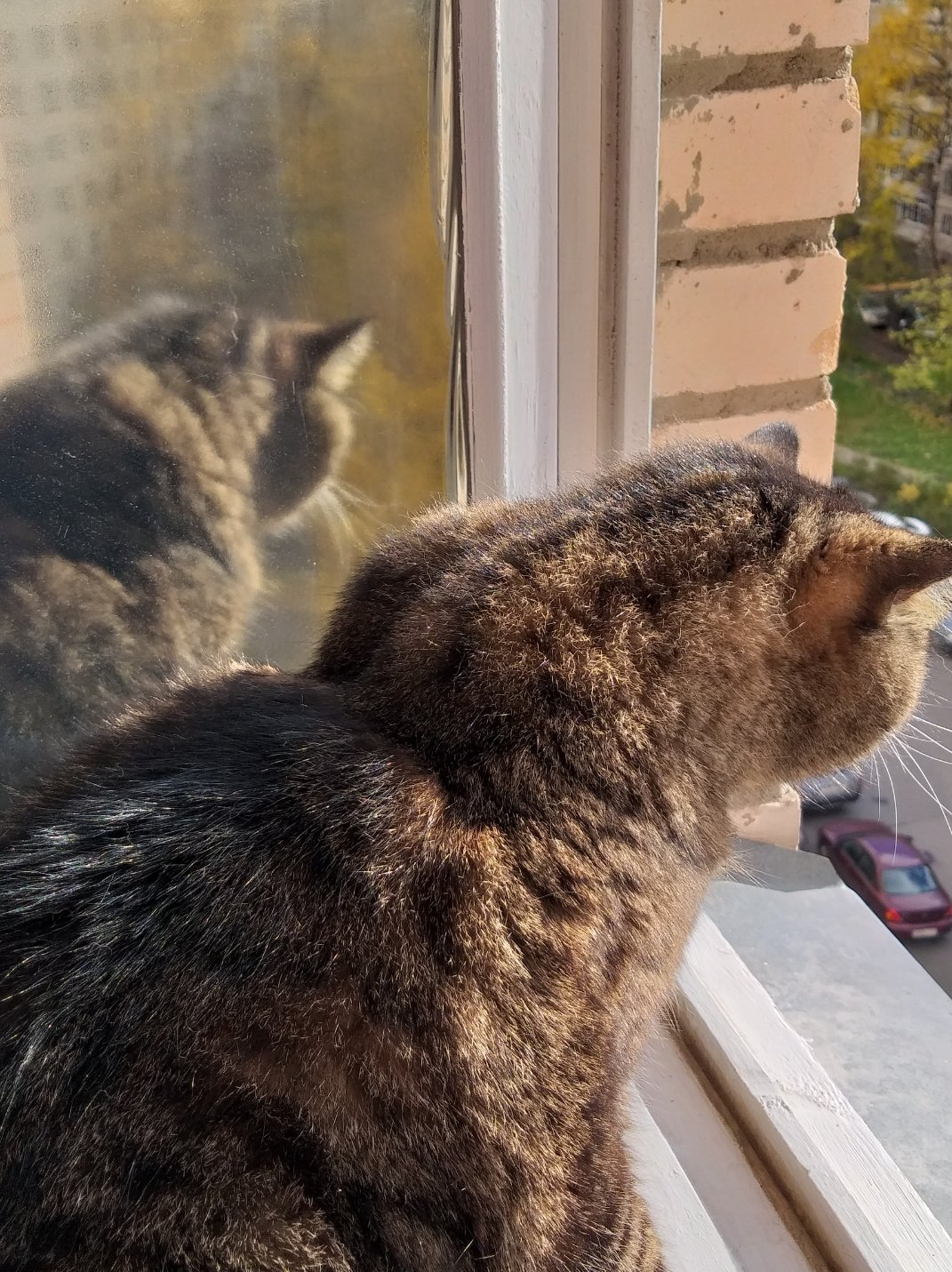 Мой Заноза все же сиганул в окно... Летом, жарко было, забыла утром закрыть. Благо, второй этаж. Побежала вниз, а он забился в нишу под балконом. Напуганный, нос в крови. А там узко и глубоко. Я и протиснуться не могу, и рукой не достану. Пришлось встать на четвереньки... Представляете картину - утро, люди на работу идут, а из под балкона .... торчит. Народ начал собираться. Женщина подошла, спрашивает: Вам плохо? Нет, говорю, хорошо, видите прохладно тут - отдыхаю. Мужчина спросил : Вам помочь? Ох, говорю, не мешайте, сейчас если выбежит, совсем не поймаю, машины кругом.