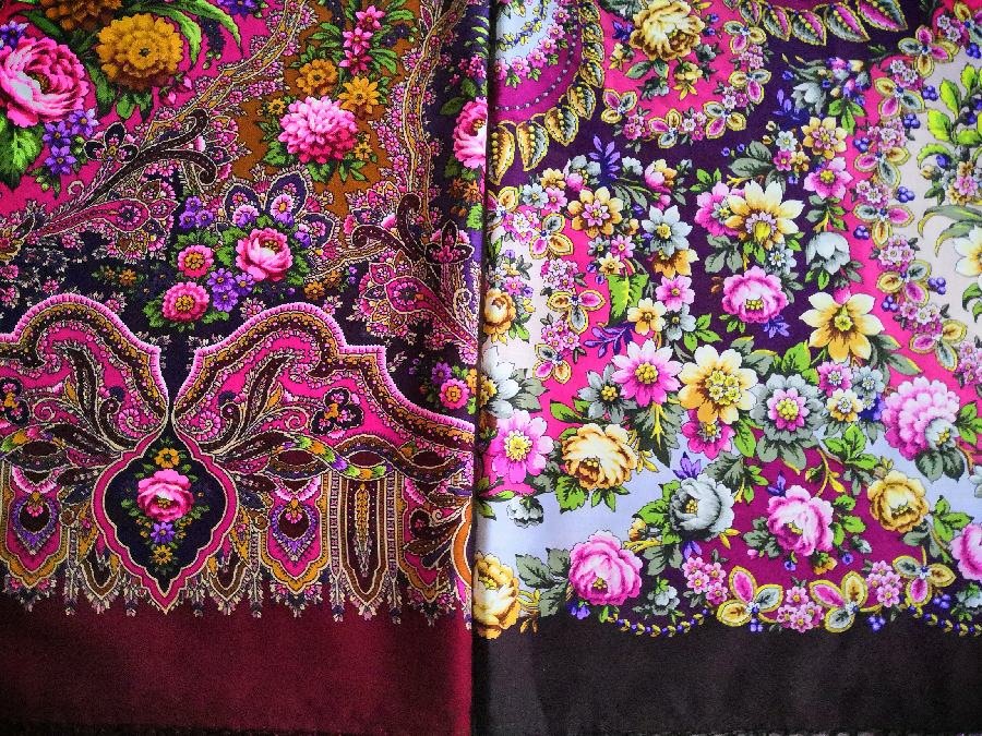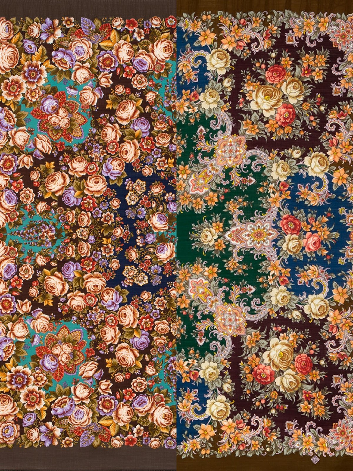 А я решила сравнить два зелёных орнаментальных разномасштабных платка