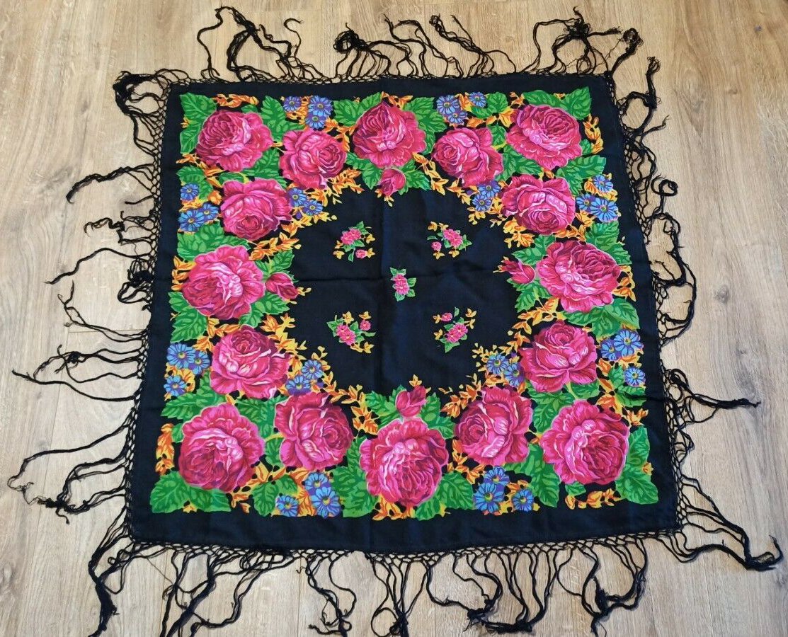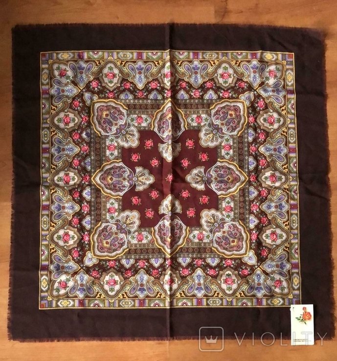 Любопытная у него маркировка, черная надпись по краю платка "Павловский посад". Отнесу в БС фотографии этикеток, бирок и прочего.
