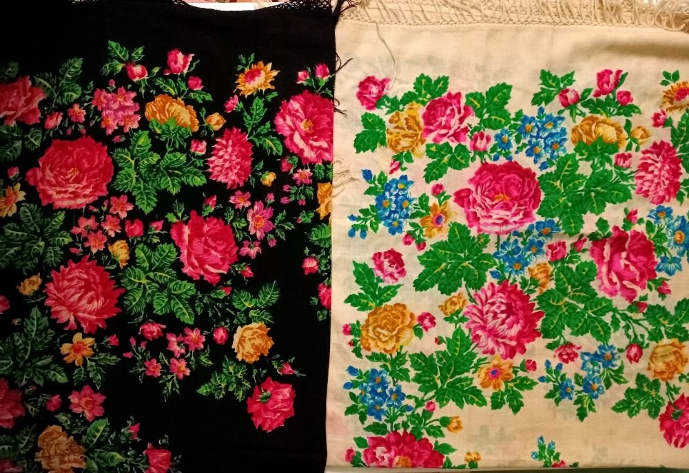 Сравнение дивных 13х колоритов шерстяных платочков авторства Екатерины Регуновой - Южная ночь 89*89 и Завалинка 72*72