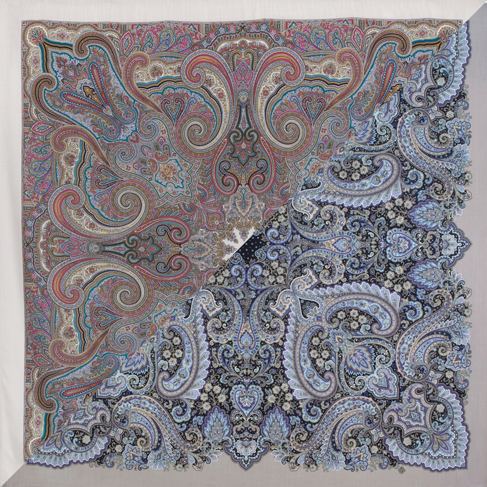 Сравнение дивных 13х колоритов шерстяных платочков авторства Екатерины Регуновой - Южная ночь 89*89 и Завалинка 72*72