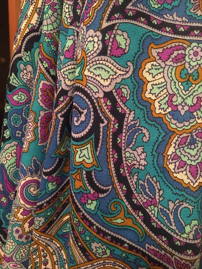 Бирюзово-голубой, фиолетовый, мятный цвет, немного горчицы