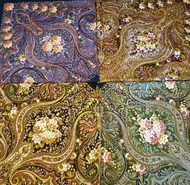У меня биндж, т.е. срыв после долгого воздержания. Немного денег случилось, ну я и... А ведь вроде уже решила, что насытилась. Да какое там! Ко мне ещё едут зелёная "Волшебница", "Русская красавица" (Лунная ночь на капустном поле) и ещё батистовый большой платок, голубой с огненными языками. Жуть!