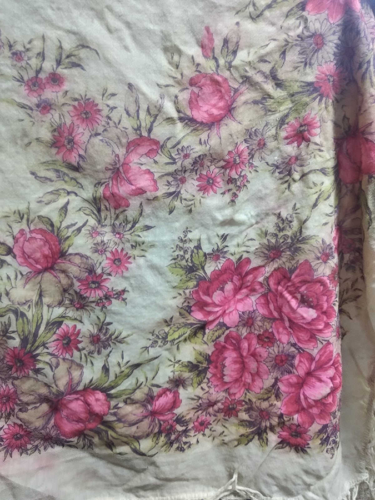 Знакомая нашла убитый в смерть платок, но с таким милым рисунком: ирисы с ромашками..... вначале искала среди до 110 см, но в реале он 146Х146 шерстяная бахрома...И вроде знакомый рисунок, а найти не получается...Подскажите хотя бы направление где посмотреть ( и "БУкеты" и "Гирлянды" просмотрела - не увидала...) Платок конечно годится только для рукоделия, может попробовать мокрое валяние? Уж больно рисунок хорош!