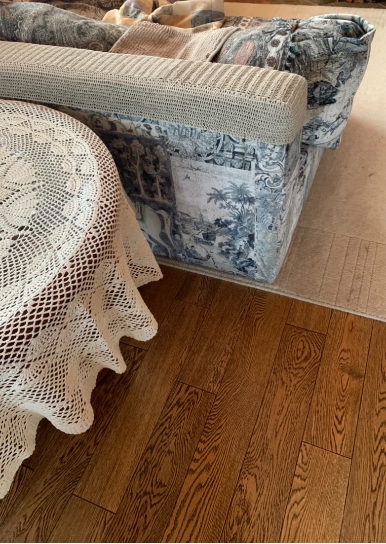 Давно в теме не появлялась. Наконец закончен садово-огородный сезон. Если помните, показывала чехлы из льняной пряжи на стулья. Теперь готовы чехлы на диваны. Утилитарно. Ибо кошки любят на них спать. Диваны к съемке не готовились