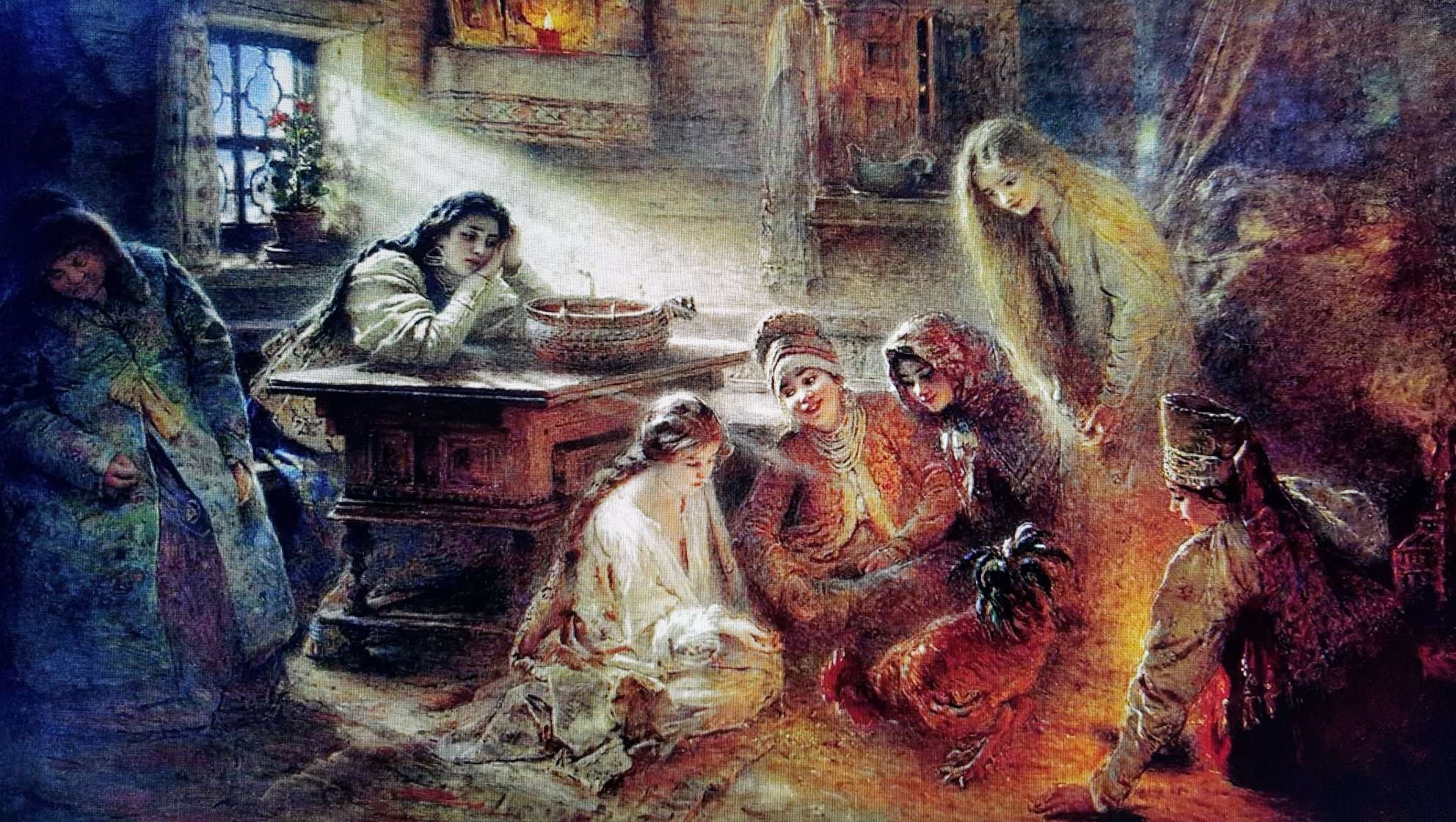 И картина Константина Егоровича Маковского «Святочные гадания», 1890 год.