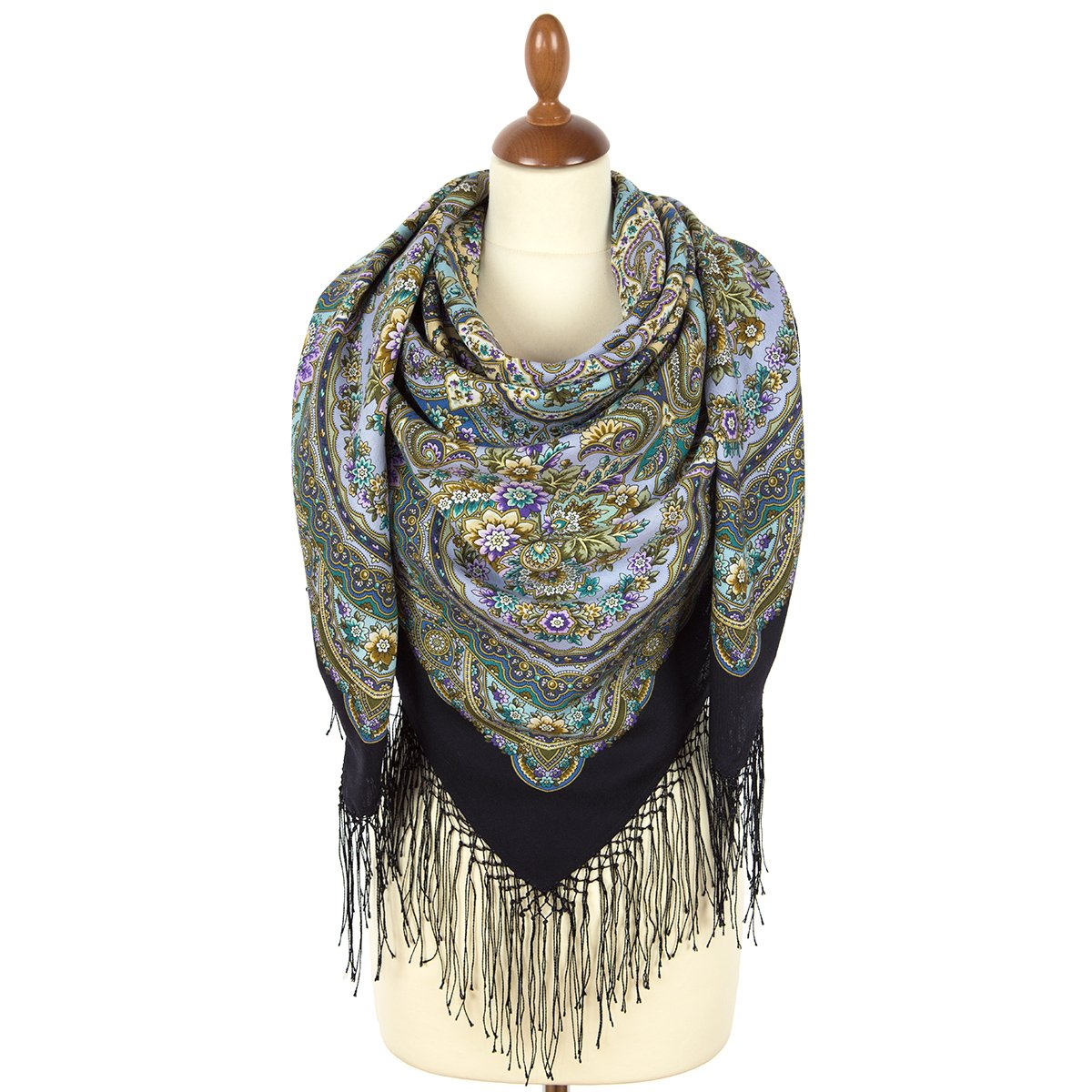 Платок шерстяной с шелковой бахромой, 146x146 см