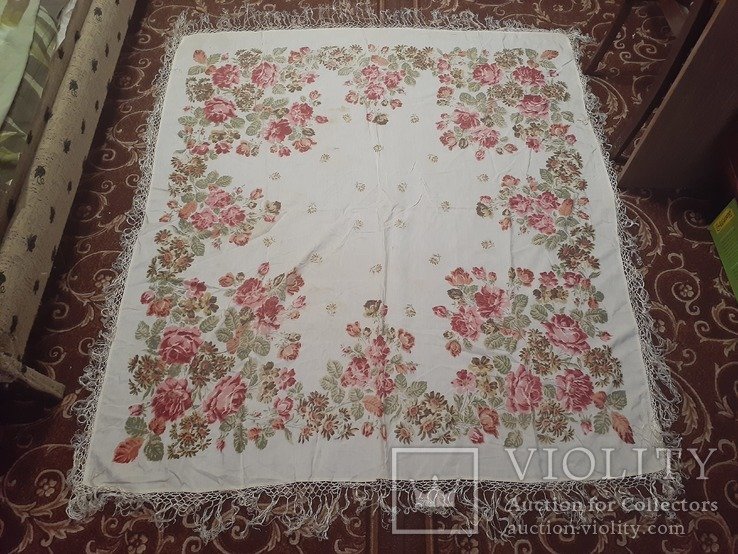 Бывшая владелица этого платка поделилась его историей: "Платок был превезен прадедом из австрийского плена в Киев на сватание в 1867 году. Потом платок переходил по женской линии в семье и надевался на на самые торжественные случаи. Платок не продали в войну. хранили В семье рождались одни девочки. На мне традиция рождения девочек закончилась но и платок я не разу не надевала. Вот его секрет."