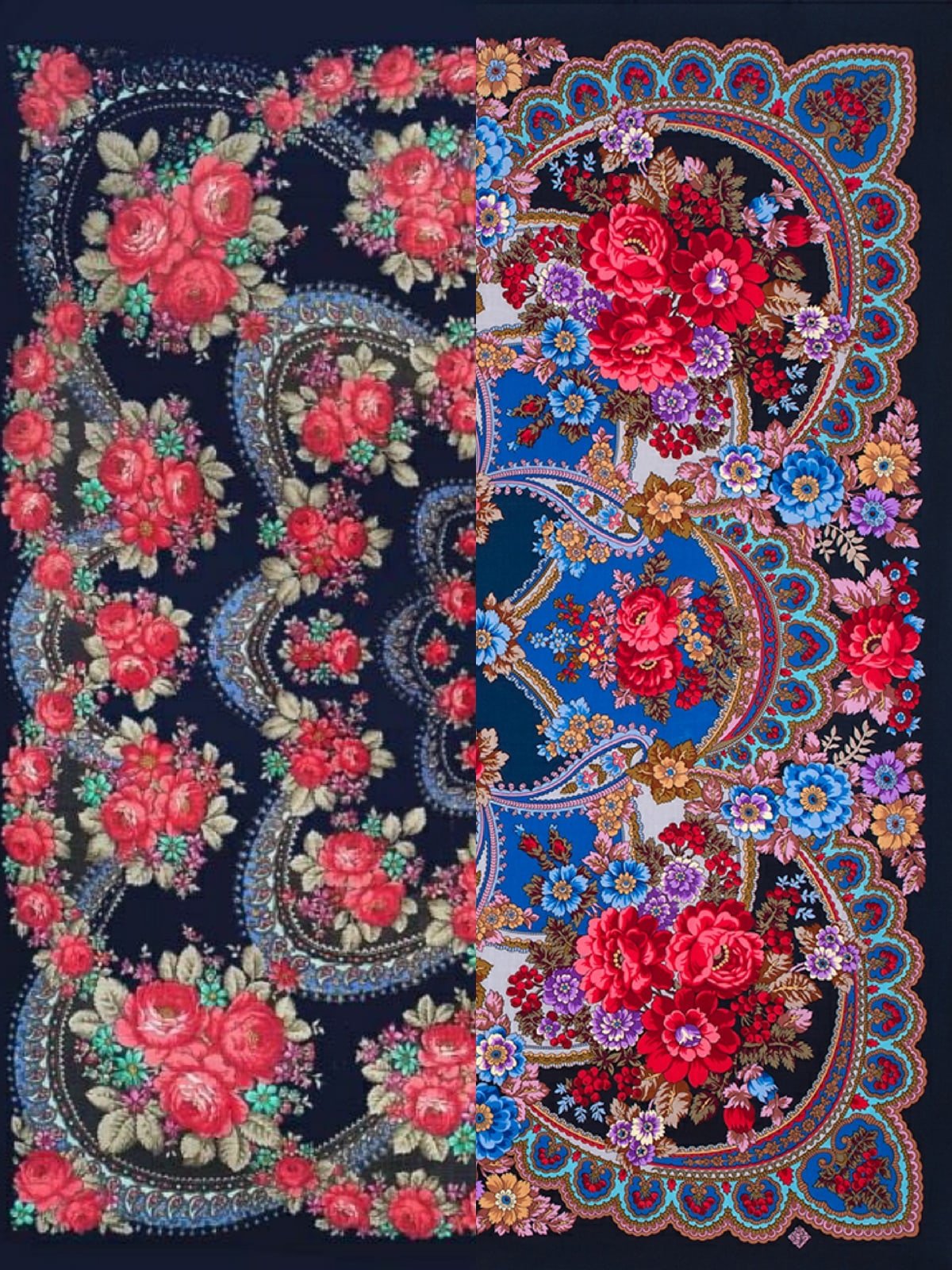 Не нашла фото в нормальном разрешении, с сайта убрали этот артикул, а сравнение очень интересное получилось - кокошники уменьшены до орнамента, огурцы растянуты и вместо роз прекрасный виноград