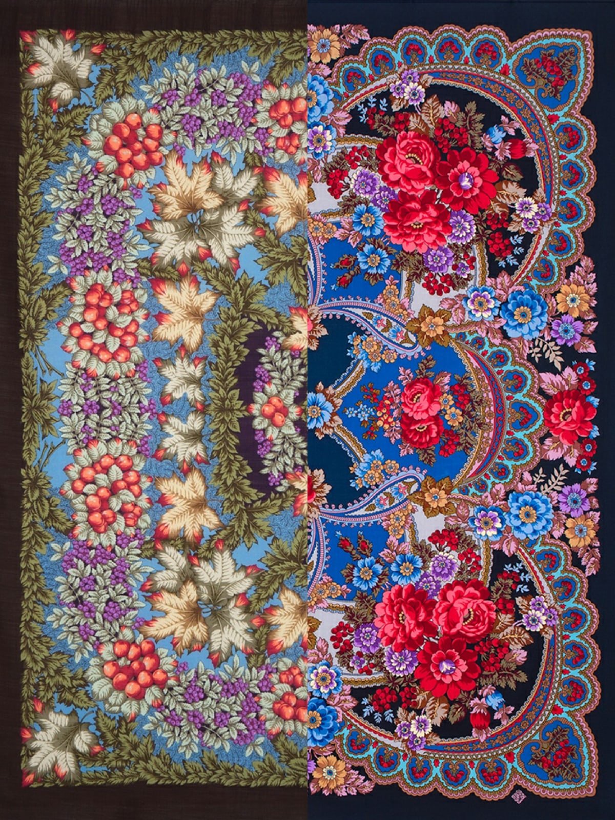 Не нашла фото в нормальном разрешении, с сайта убрали этот артикул, а сравнение очень интересное получилось - кокошники уменьшены до орнамента, огурцы растянуты и вместо роз прекрасный виноград
