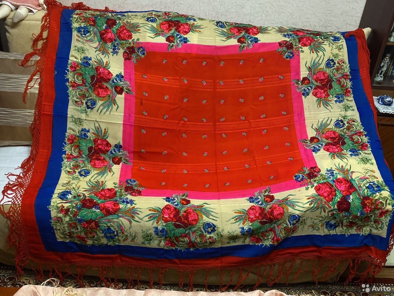 Описание продавца: Шаль старинная до 1917г., антиквар, чистая шерсть, похоже ручная работа, досталась от бабушки 1898гр, (…) Размер 145смх145см до кистей
