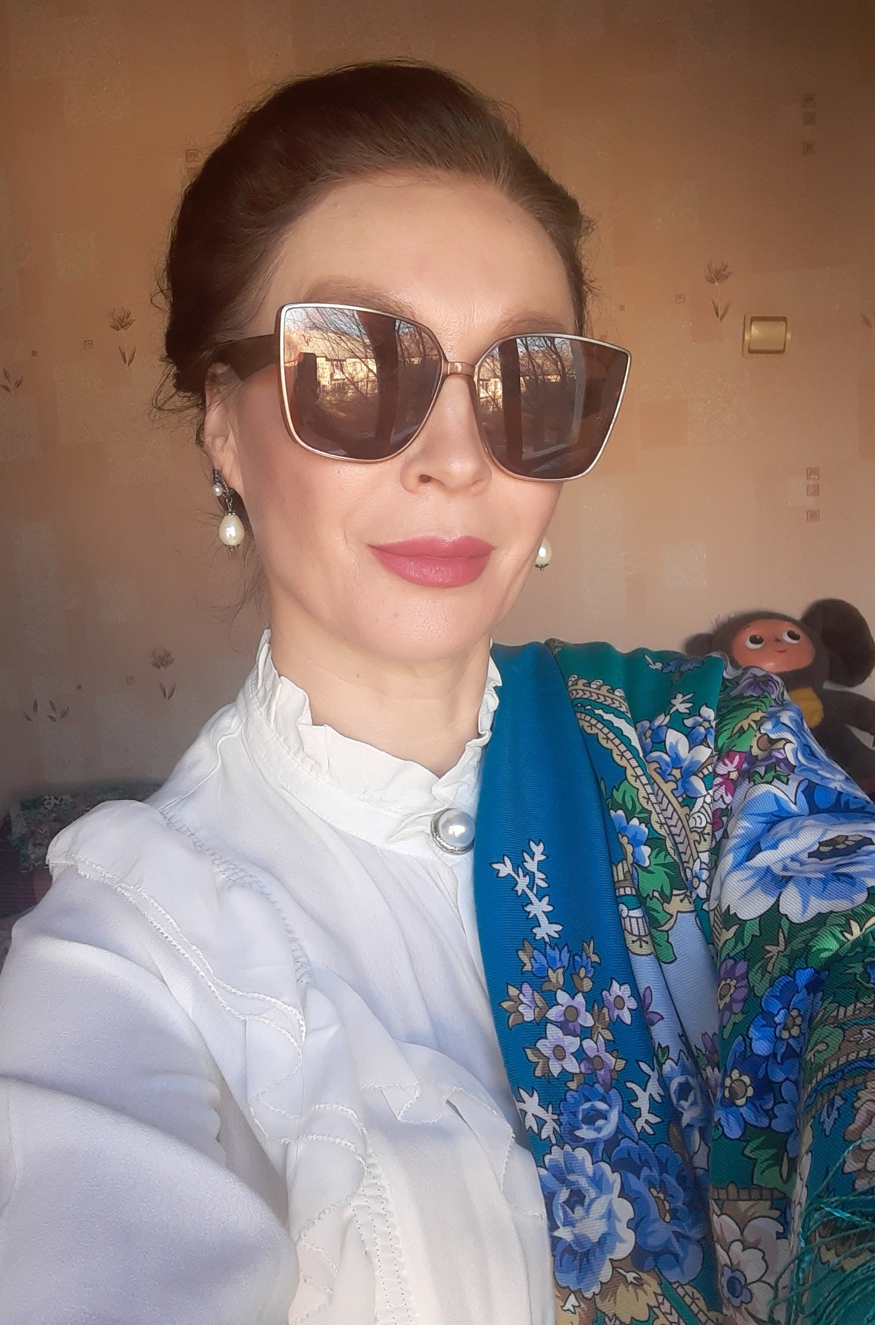 Надия, красивая до сияния! На белой блузке шаль особенно хороша! Ослепительно! ^%