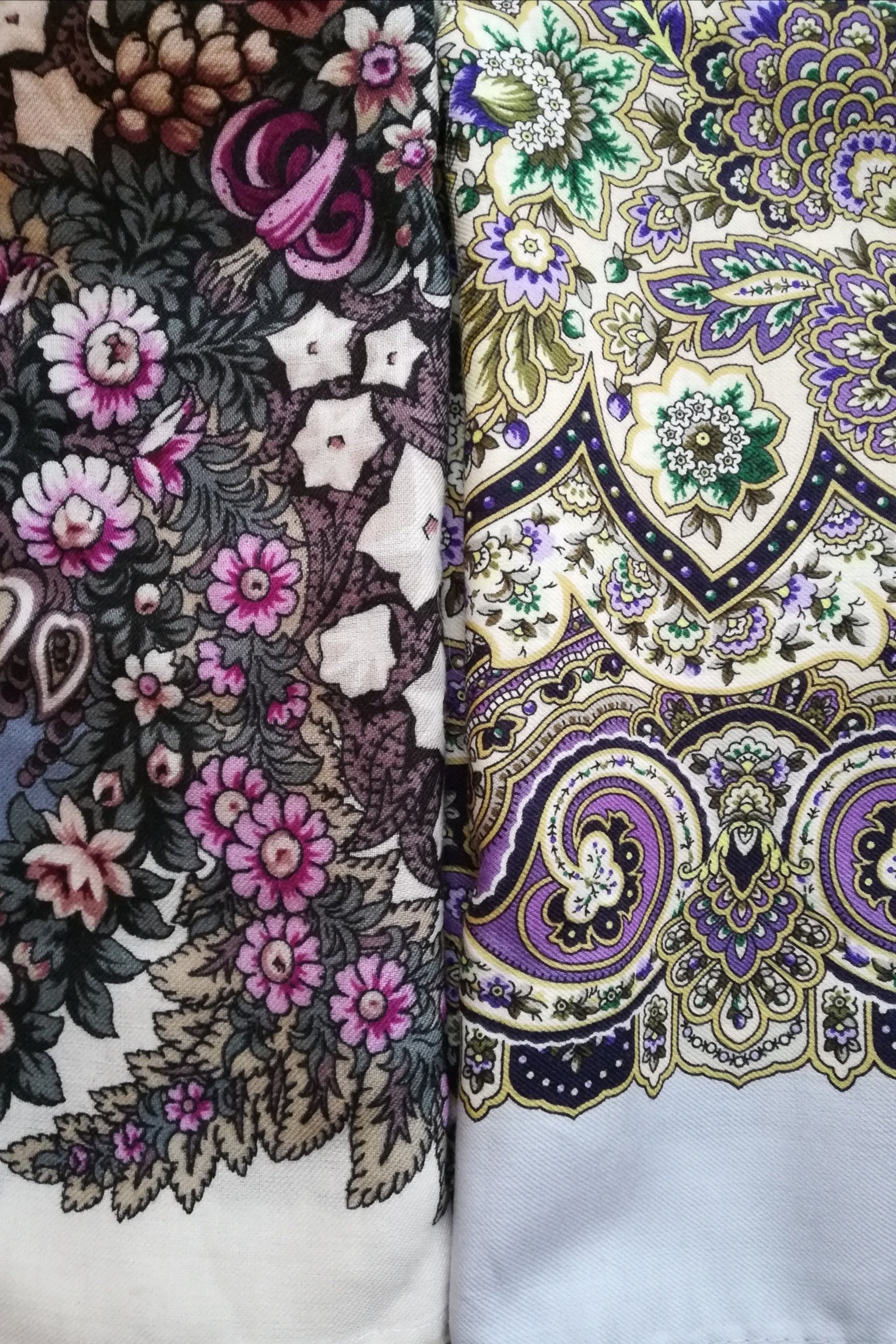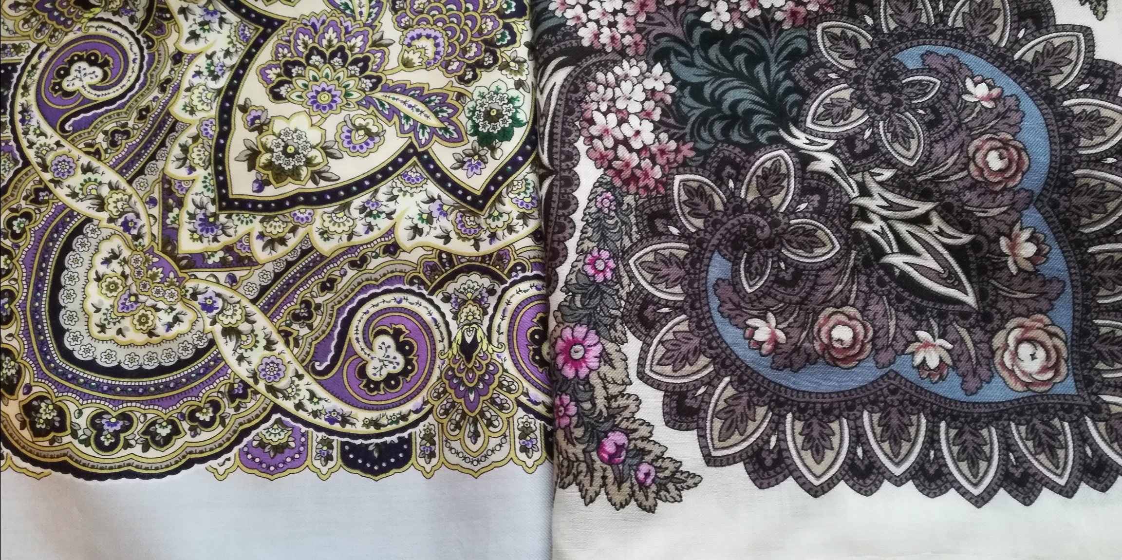 Сравнение лиловостей Василисы и Зимы, обе шали 14 колорита