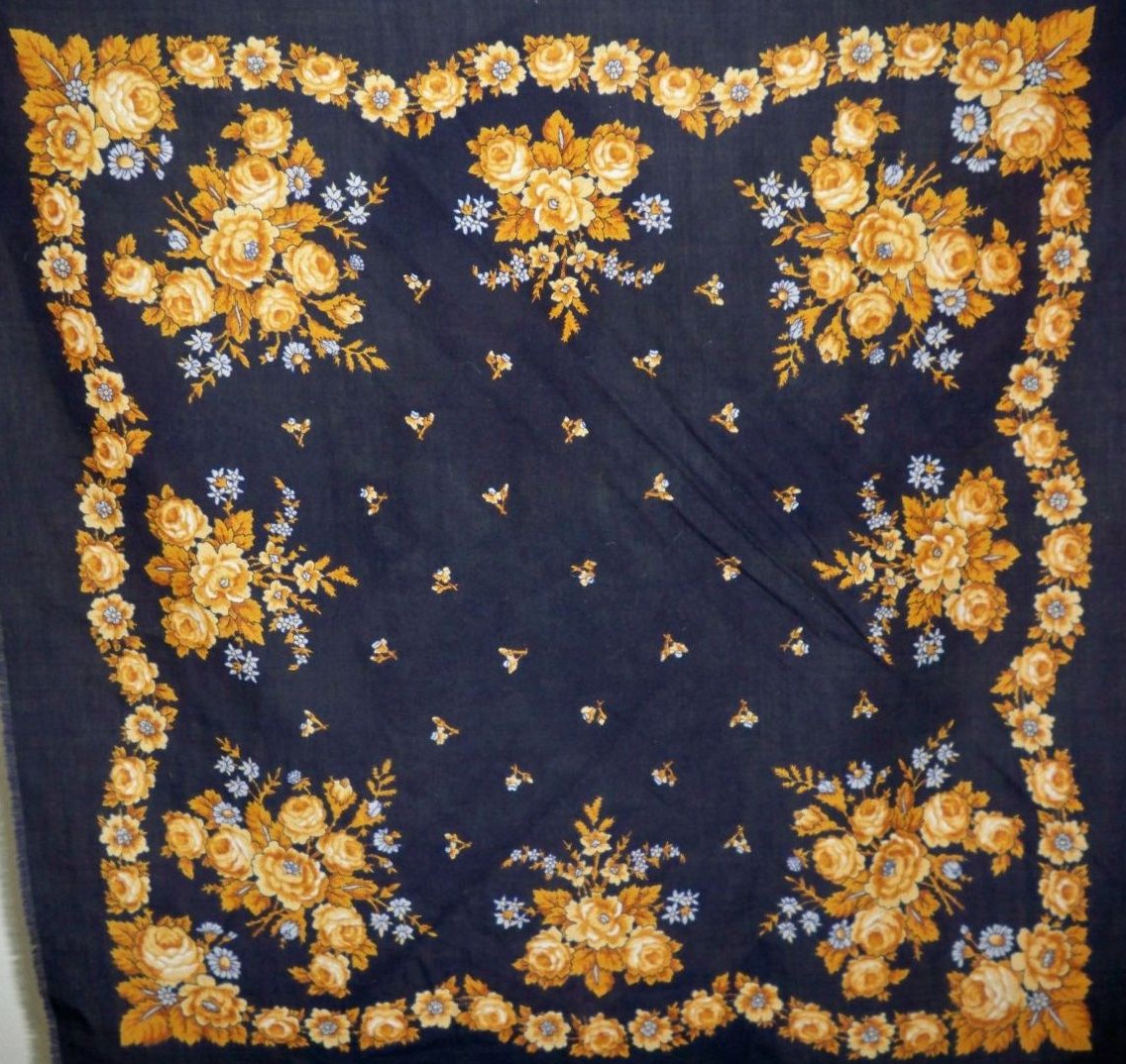 А этот платочек 89х89 мой. Ношу его осенью по куртку. Когда очень холодно, то одеваю его под большой платок. Куплен моей мамой, в 80-годах