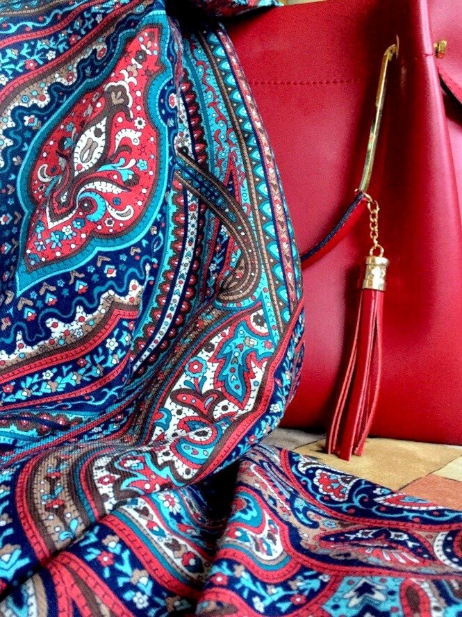 Была радость, в практически тропическом климате пролился как-то дождь и принес немного прохлады, дня на полтора принес. Отметила я это дело моментально платьем с длинным рукавом, и даже шаль захотелось, и вышла гулять впервые Филигрань 19. Вышла и потребовала себе мелкую сумочку. На размере настаивала особо. Не новое, но пошла скрести по сусекам. Наскребла следующее.