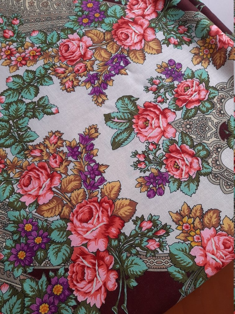На рисунке этой шали (во всех колоритах), конечно очень эффектно смотрится уходящие в пенную кромку из роз, орнаментальные элементы.