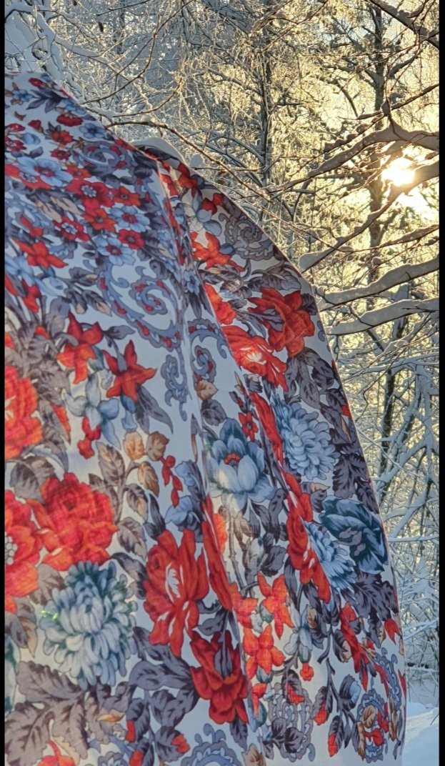 Самый мой обжигающий контрастом льда и пламени платок Утомлённое солнце, 0 - в нынешних -20⁰C. Южная Карелия.