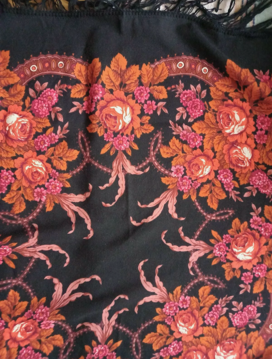 На улице вовсю зима. Все шерсть показывают, а я вот с шелком. Под Новый год случилось чудо и со мной. Я давным-давно хотела платочек Цветы для любимой в 6-м колорите. Хотя видела его чуть. Невероятный рисунок в прекраснейшем колорите. Но достать такое было немыслимым. Вот я и мечтала о нем негромко, ненастойчиво - ну, что мучиться без толку... И вдруг, как подарок под елочку, он появляется в продаже. Наша шальная девушка нашла его в подмосковном магазине в пересорте, купила, чтоб опять не потерялся. И предложила. Спасибо ей! И спасибо нашей Танечке-Ларне, которая увидела объявление, вспомнила мою мечту и написала мне. В общем, чудо случилось - желанный и недостижимый оказался у меня в руках, аж дрожащих от волнения. Так боялась ему не понравиться. Но нет - на мою любовь ответили!!! Вот хочу поделиться счастьем со всеми. И заодно пополнить архив, ведь там нет этого платочка практически.