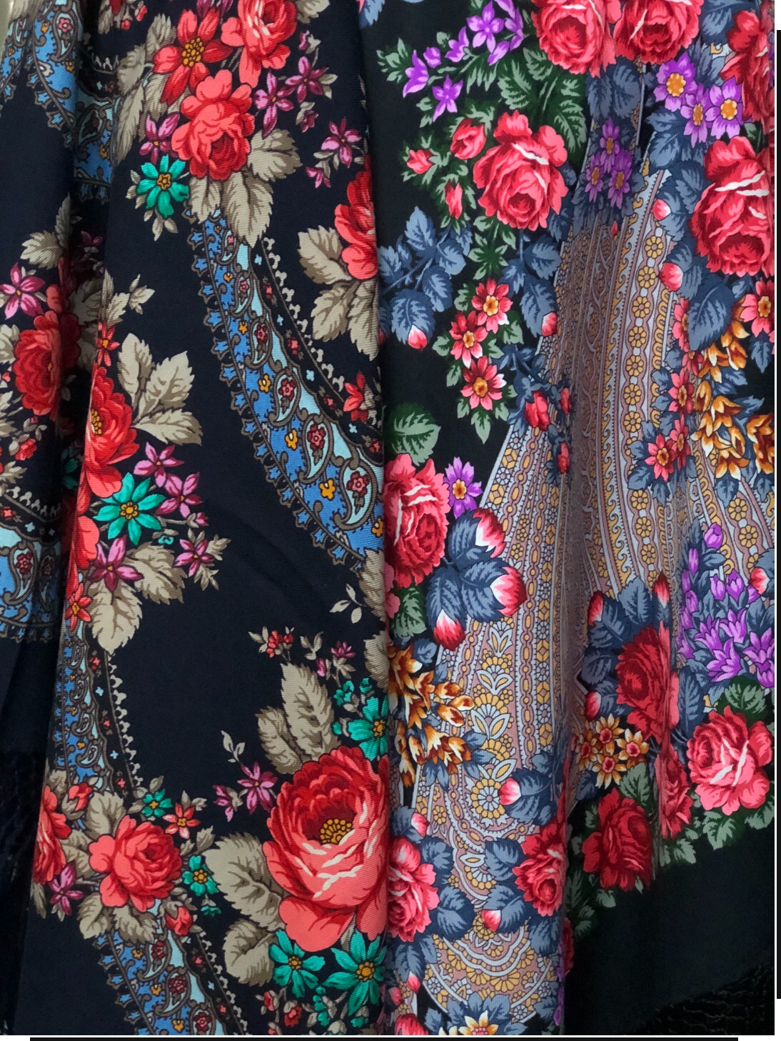 Оля. спасибо! Не всегда, конечно. Подкова имеет какой то необычный оттенок сиреневого--нигде больше такой не видела в платках. Может быть это такой эффект в сочетании с общей палитрой. На мне шаль не выглядела фольклорной.
