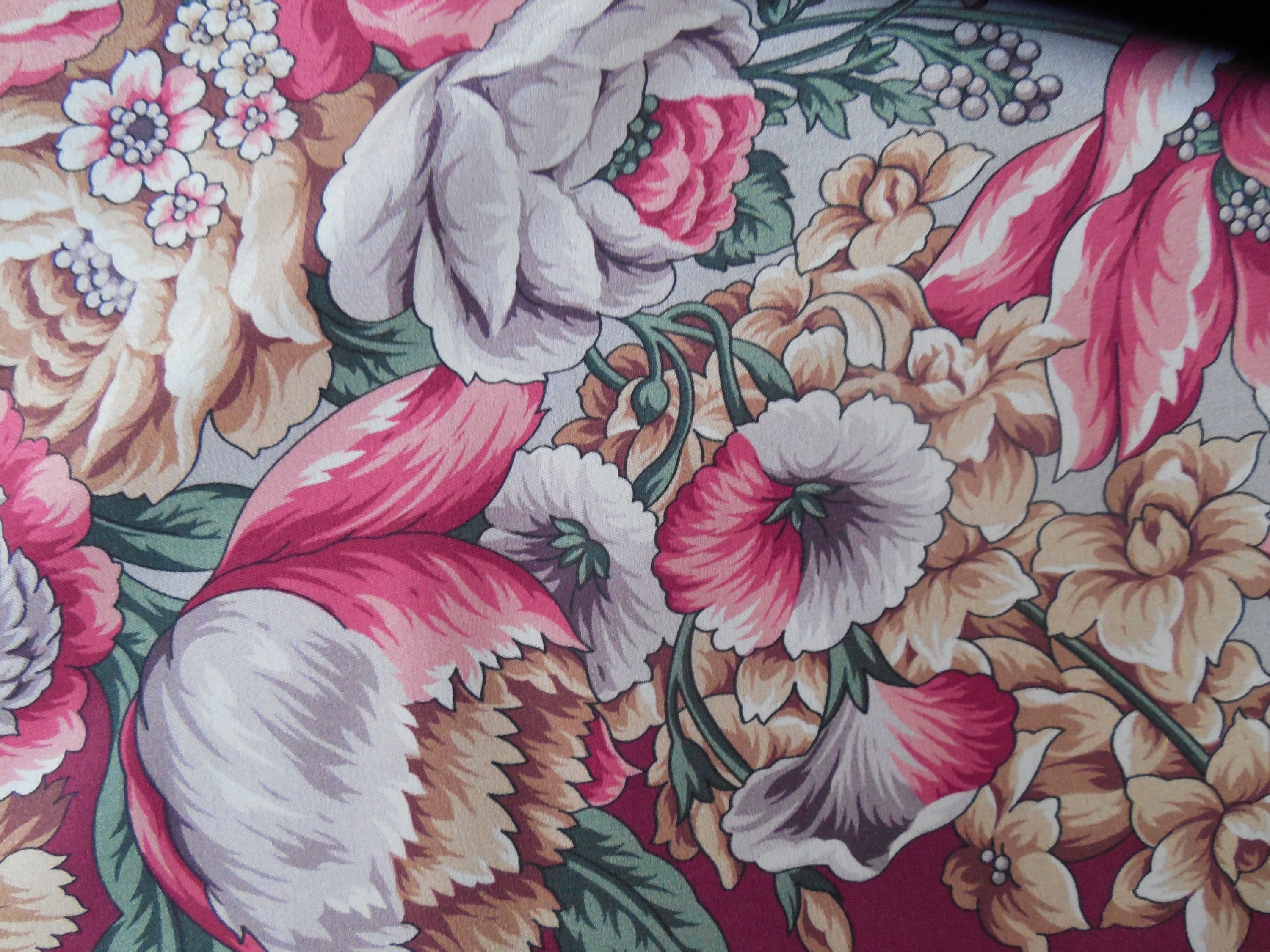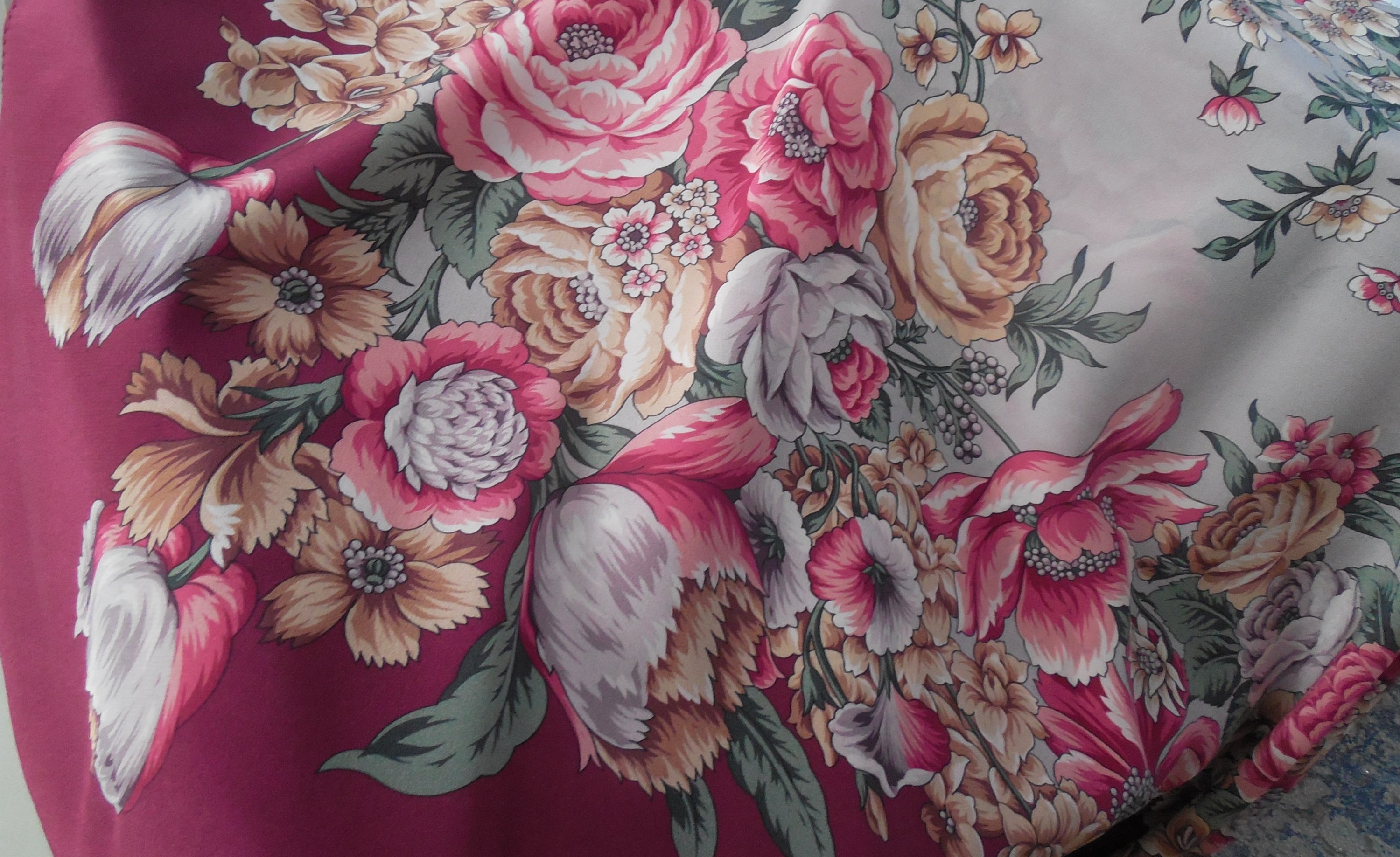 На улице вовсю зима. Все шерсть показывают, а я вот с шелком. Под Новый год случилось чудо и со мной. Я давным-давно хотела платочек Цветы для любимой в 6-м колорите. Хотя видела его чуть. Невероятный рисунок в прекраснейшем колорите. Но достать такое было немыслимым. Вот я и мечтала о нем негромко, ненастойчиво - ну, что мучиться без толку... И вдруг, как подарок под елочку, он появляется в продаже. Наша шальная девушка нашла его в подмосковном магазине в пересорте, купила, чтоб опять не потерялся. И предложила. Спасибо ей! И спасибо нашей Танечке-Ларне, которая увидела объявление, вспомнила мою мечту и написала мне. В общем, чудо случилось - желанный и недостижимый оказался у меня в руках, аж дрожащих от волнения. Так боялась ему не понравиться. Но нет - на мою любовь ответили!!! Вот хочу поделиться счастьем со всеми. И заодно пополнить архив, ведь там нет этого платочка практически.