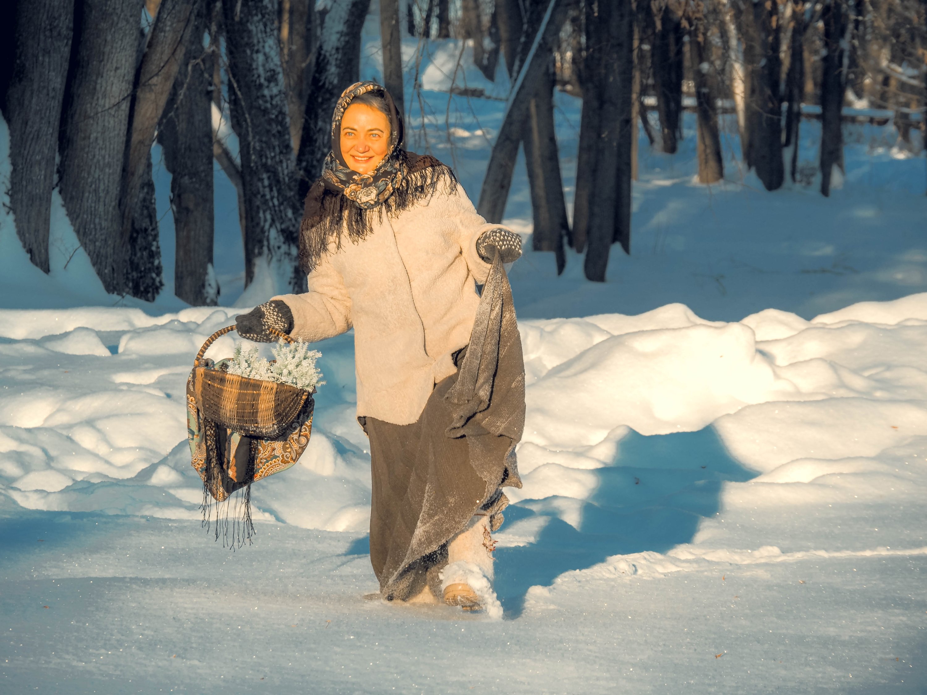 Ожившая сказка! Какое хорошее настроение у девушки с корзиной, полной подснежников! ^%