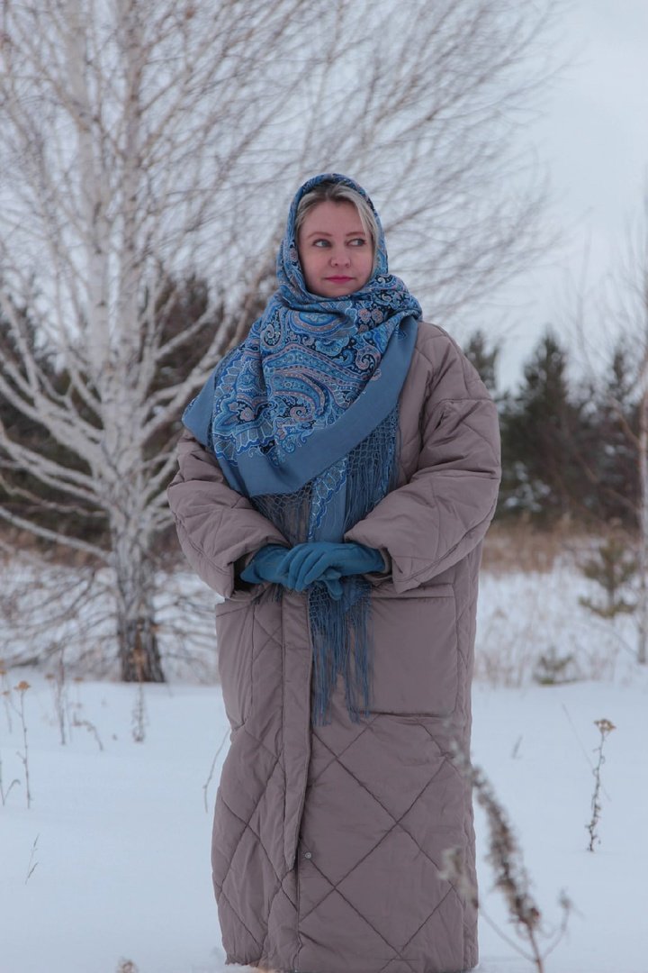 Время платочное летит быстро, 6 лет как они покупаются регулярно, иногда почти безудержно,но бывают и знакомые многим периоды относительного охлаждения. Одной из первых шалей 6 лет назад купила Июньское утро. На самом деле хотела Цветы под снегом. А тогда мне еще казалось, о блаженные времена, что надо выбрать вот прямо один 14го колорита. Я и так "смело и безоглядно" купила уже коралловое Остановись мгновенье и мятный Волшебный узор, еще и васильковую Славянку...ну...больше-то уж куда...-говорили в семье.. Я их уверенно успокаивала,- мол,достаточно,конечно. Правда,самой себе так просто ответить, - достаточно ли? - вряд ли могла бы. Так вот,выбирала синий, главный и любимый цвет, самый важный тогда выбор. И Цветы под снегом мне очень нравились. Но мама,зайдя ради меня в магазин, не просто не захотела его мне купить, а купила другой. Потому что Цветы под снегом она не одобрила категорически, сказав,что я и так вечно бледная,мне такое мрачное нельзя. Так у меня появилось Июньское утро. Я считала,что и эта шаль прекрасна,так что не огорчилась особо. Но вот все эти годы она так и висела с бирками на вешалке. А этой осенью бирки я срезала и шаль начала свою активную жизнь. Многие считают ее сложной,как я слышала. Да. Она с характером. Но я ее буду носить.