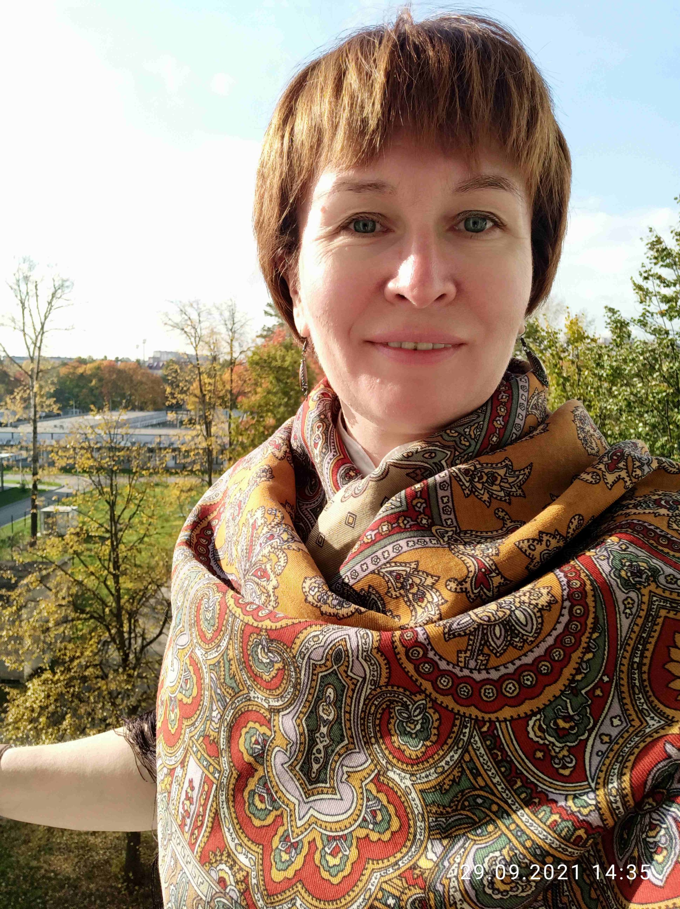 Таня, очень нравитесь в платке на голове.