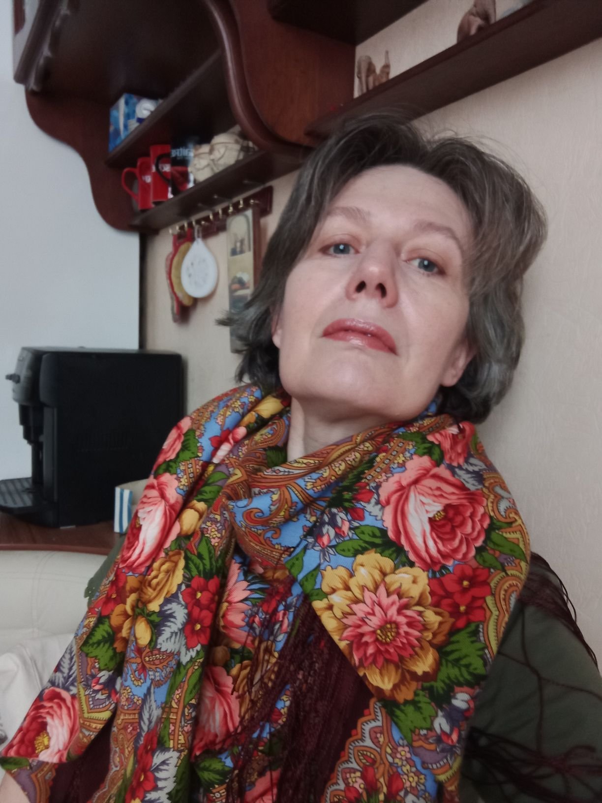 Redkat Катерина, я же говорю, у вас интересный очень цветотип, все виденные шали я вдруг вижу по-новому. А как вы себя видите сейчас с новой стрижкой и шалями? Что-то изменилось в восприятии самой себя? (Кликните, чтобы почитать, что спрятано под катом)...