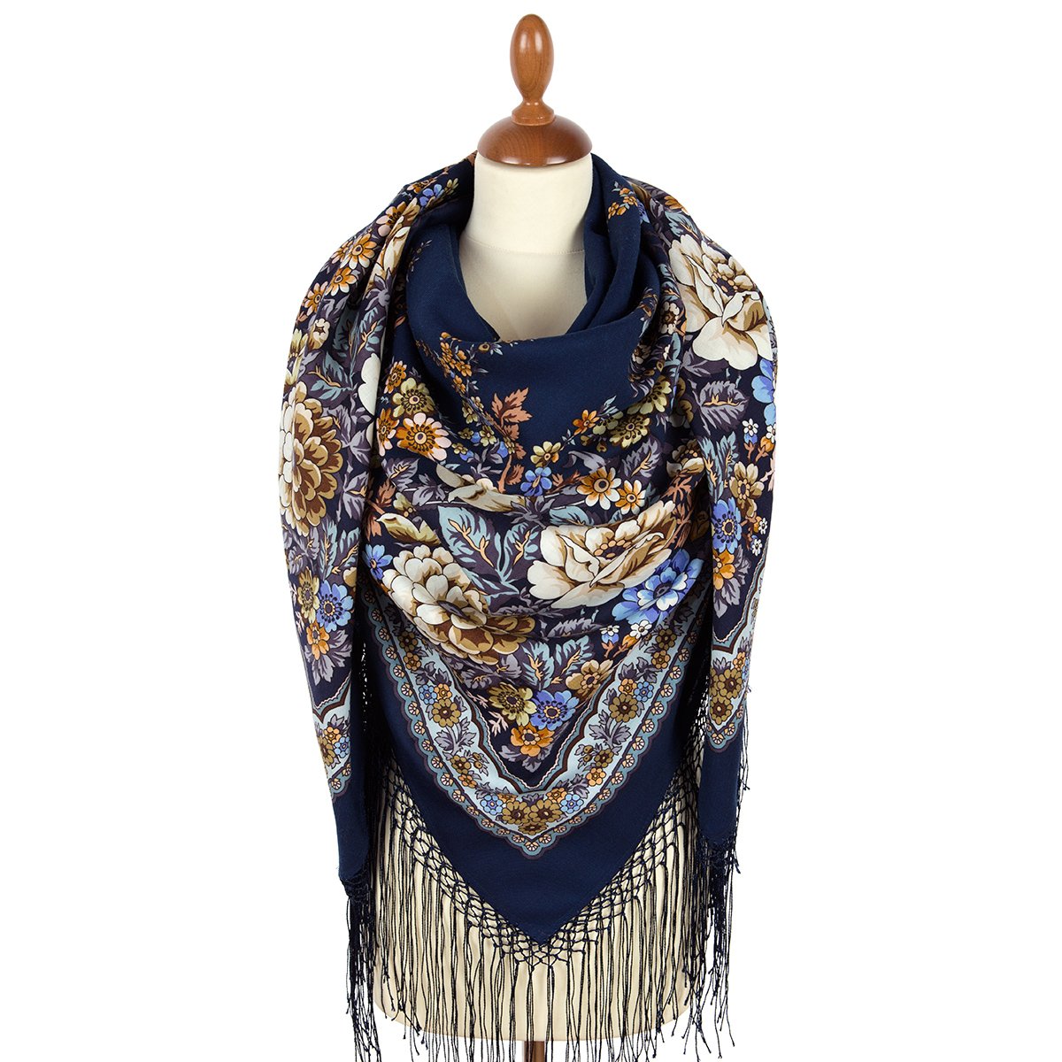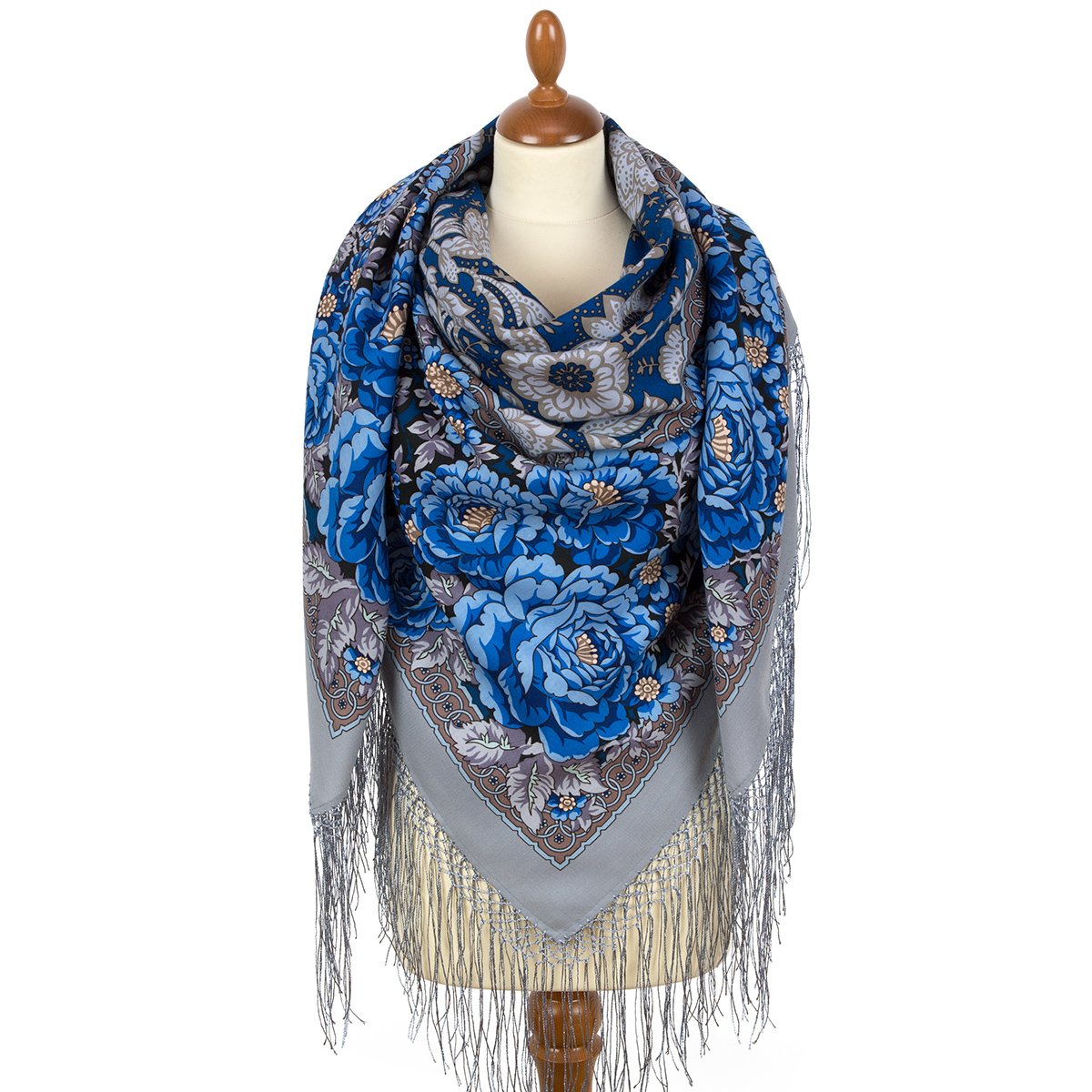 Платок шерстяной с шелковой бахромой, 125х125 см