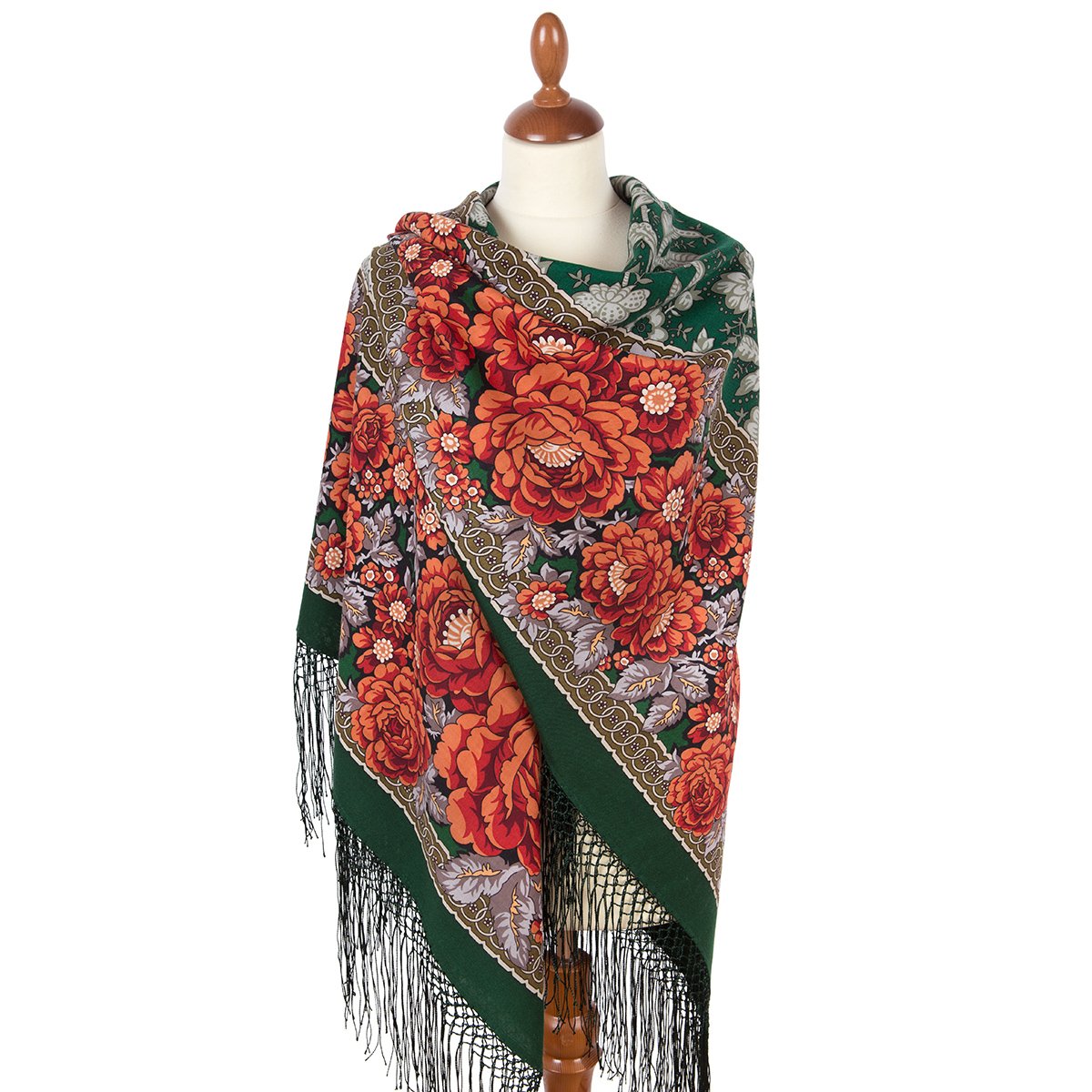 Многоцветный платок из уплотненной шерстяной ткани с шелковой бахромой, 148х148см, коллекционный