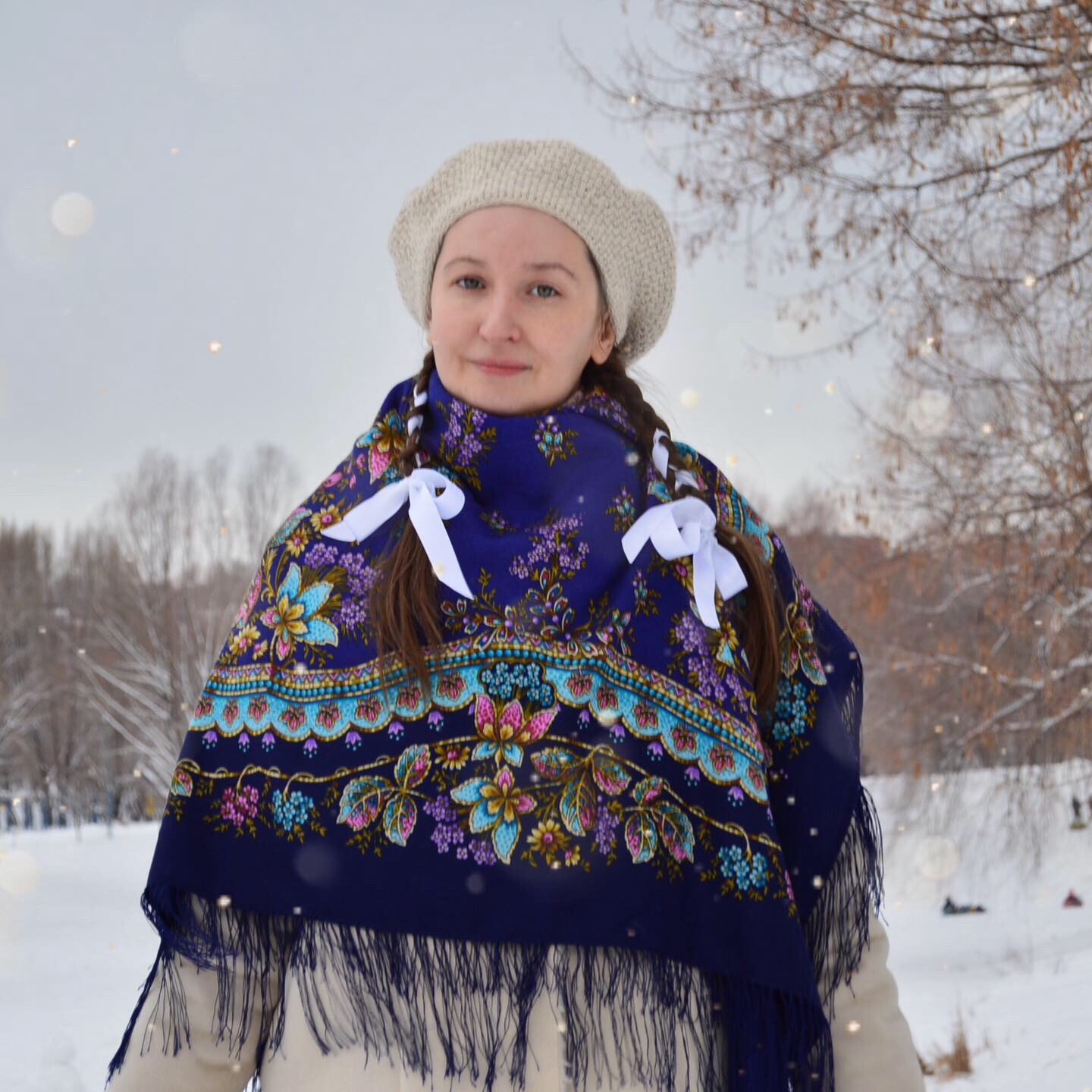Демонстрируем ношение платков и шалей.