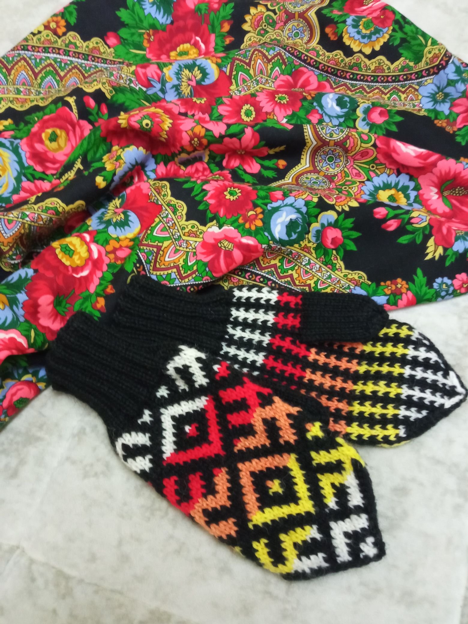 Сегодня с варежками. Рисунок тот же, эксперименты с цветом. Подкова кстати оказалась.