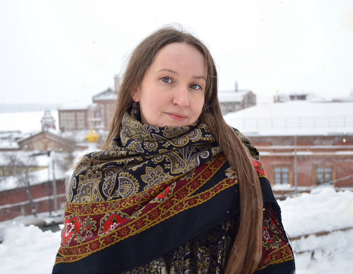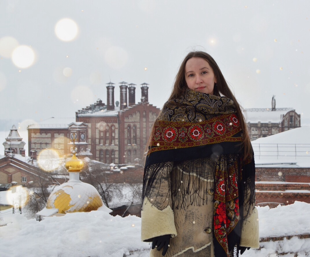 Большое спасибо! Рада, что понравилось. Но, как нам наглядно продемонстрировали наши участницы, эту шаль можно носить не только так. Она и в лесах-снегах хорошо смотрится, и на фоне храмов-куполов.