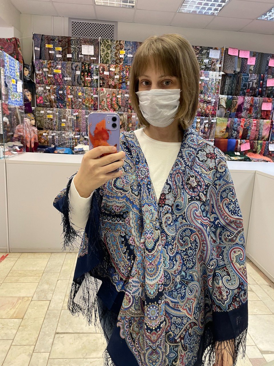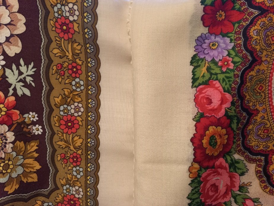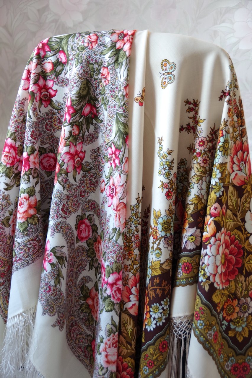 Основное поле у шали более сливочное, но приятное чувство лёгкости в восприятии справедливо и для платка Литвиновой и для шали Ольшевской.