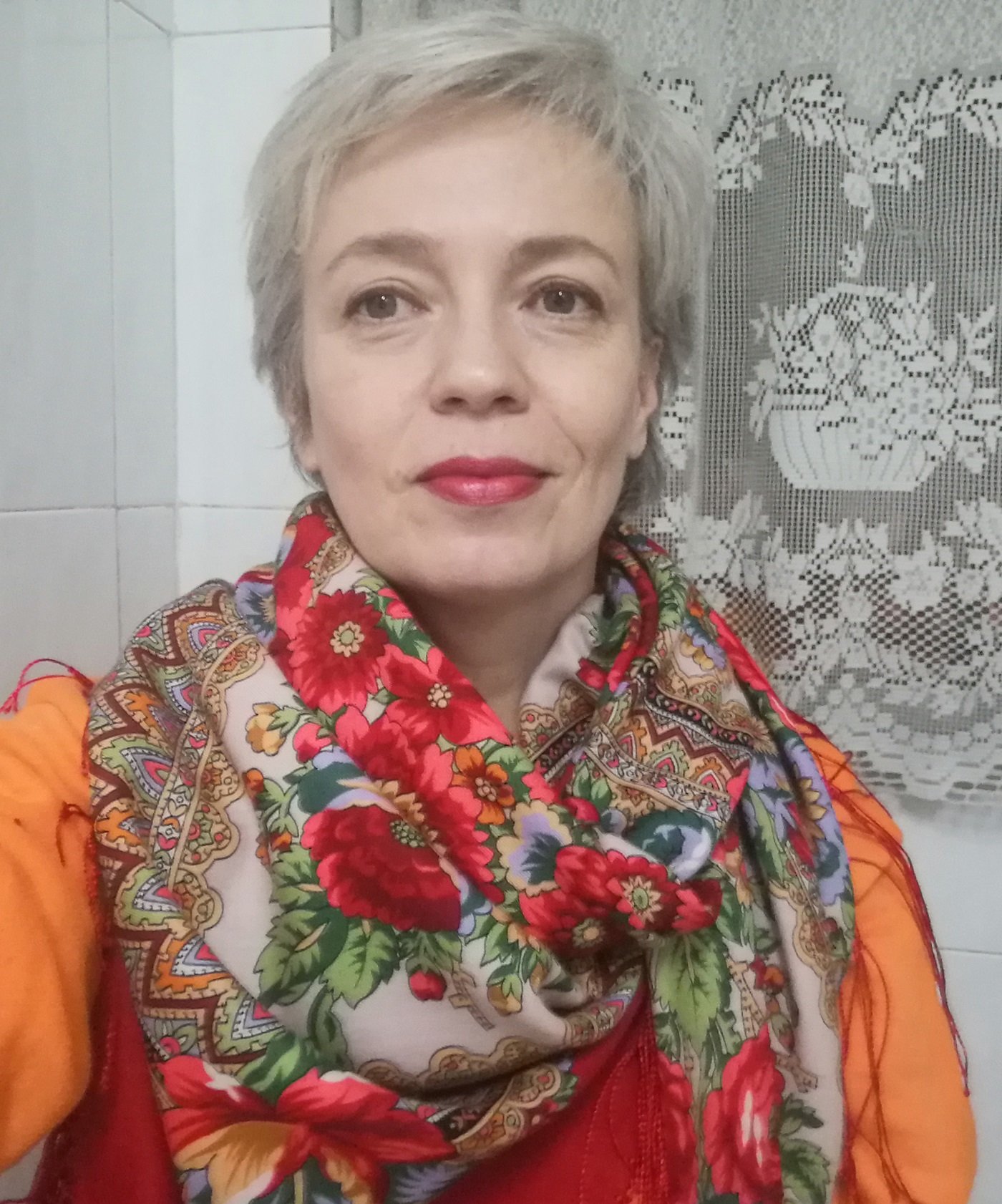 Катя Redkat, вот тоже первым делом подумала, как ты лихо справляешься с такими разными платками. Пламень сердца, оба колорита делают из тебя светящуюся изнутри фарфоровую статуэтку. Прелестно!
