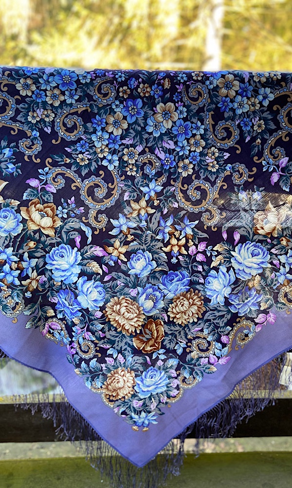 ЛенаС, как же я люблю этот платочек и как он Вам идёт! Очень верно про великолепие хризантем и светящийся голубой.