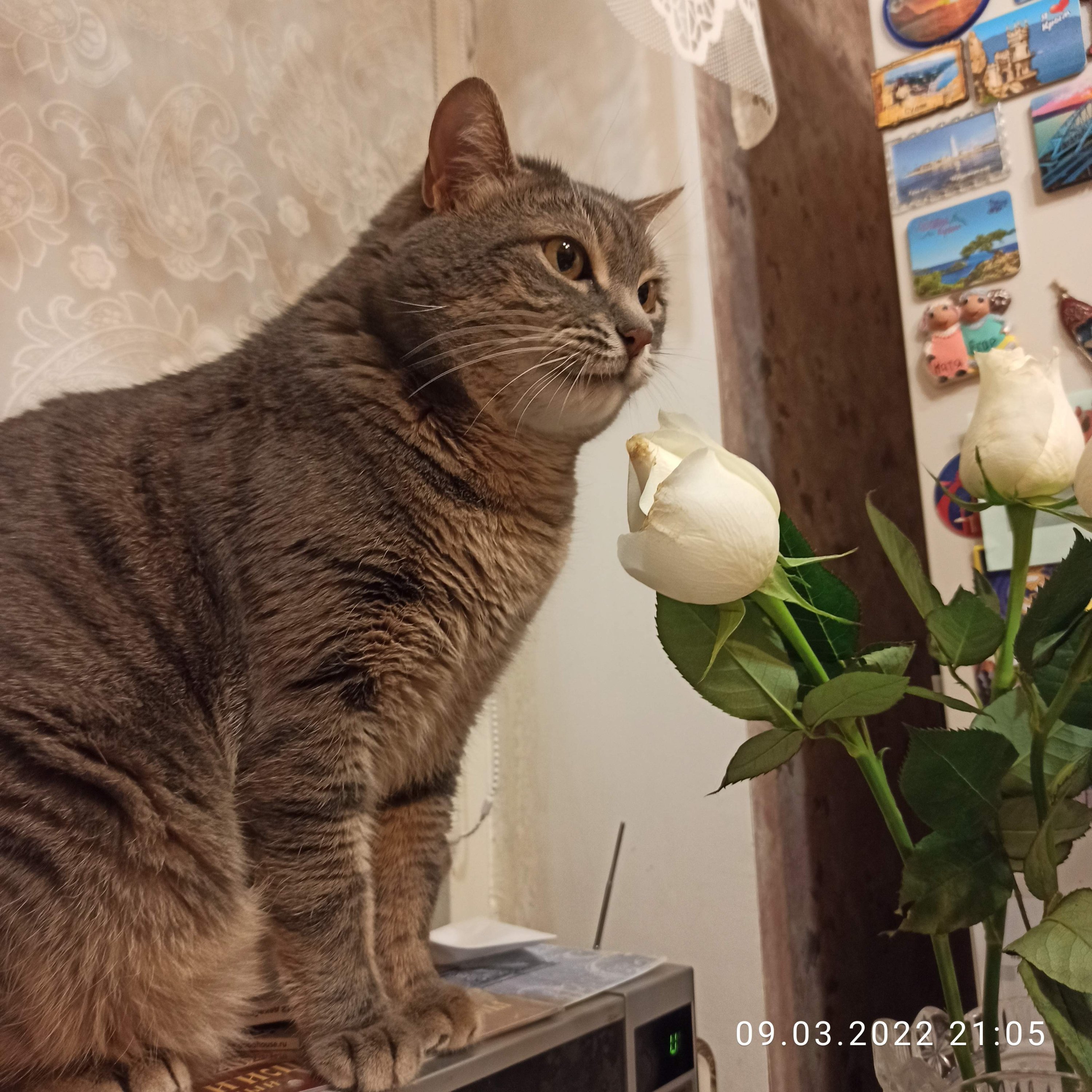 У Пантюши моего тоже есть такие - не может жить без чёрных оливок и цветов. Как только в доме появляются розы, непременно на зуб их пробует. Гоняем, конечно, но увы. И ещё очень любит тапочки с рисунком кошки)))
