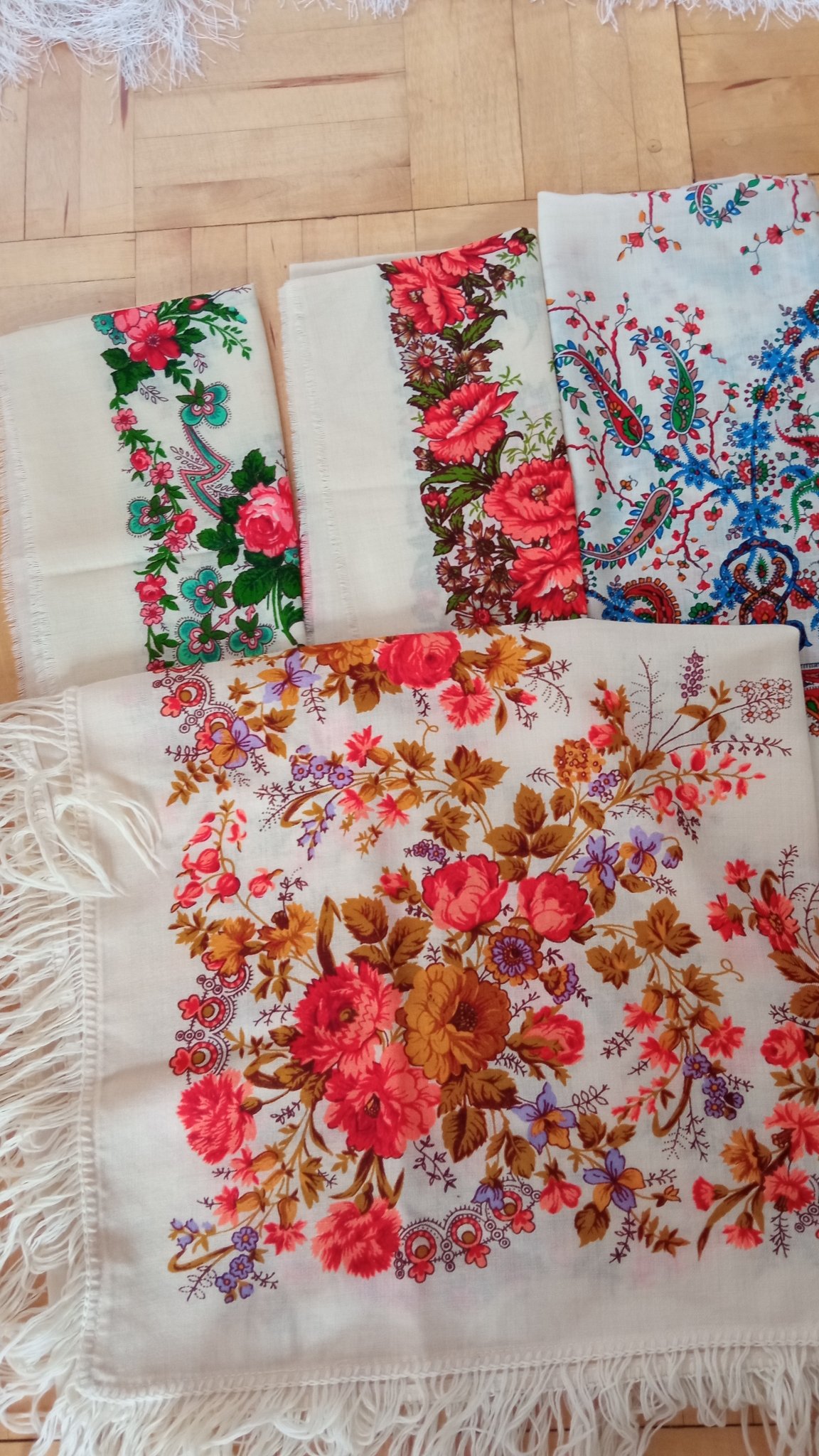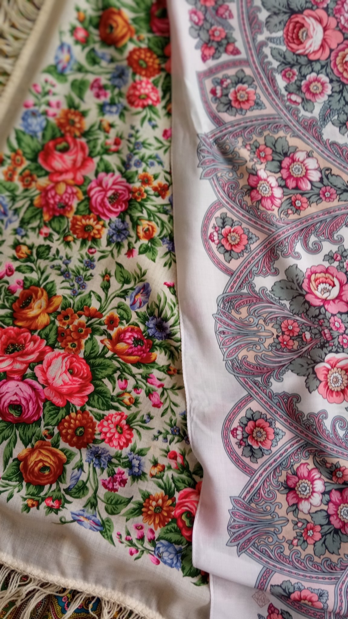 С шалями сложно: многоцветные слишком многоцветные, чтобы без сомнений их положить в кучку одного цвета.