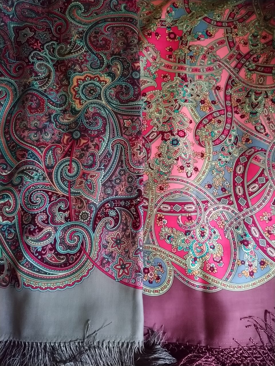 Получила сегодня свой Вернисаж. Первые впечатления при беглом осмотре- очень красивый, ткань достойная, намек на синий только с изнанки. Но, бахрома хлипкая какая-то, нитки тонюсенькие. А еще она, бахрома, фиолетовая🤔