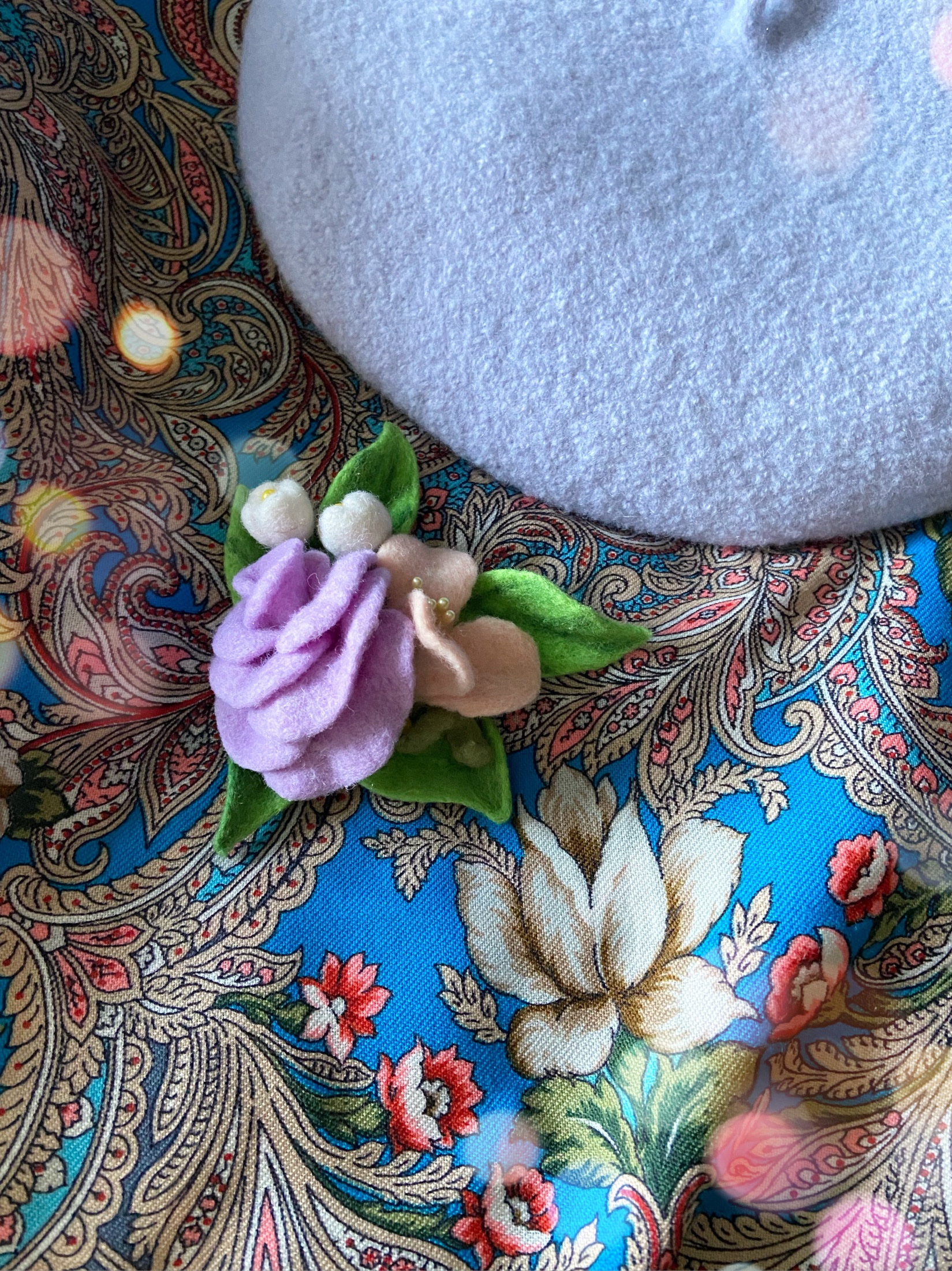 Сейчас ношу этот букетик с Чародейкой. Ручная работа, шерсть, покупала на Ярмарке Мастеров давно.