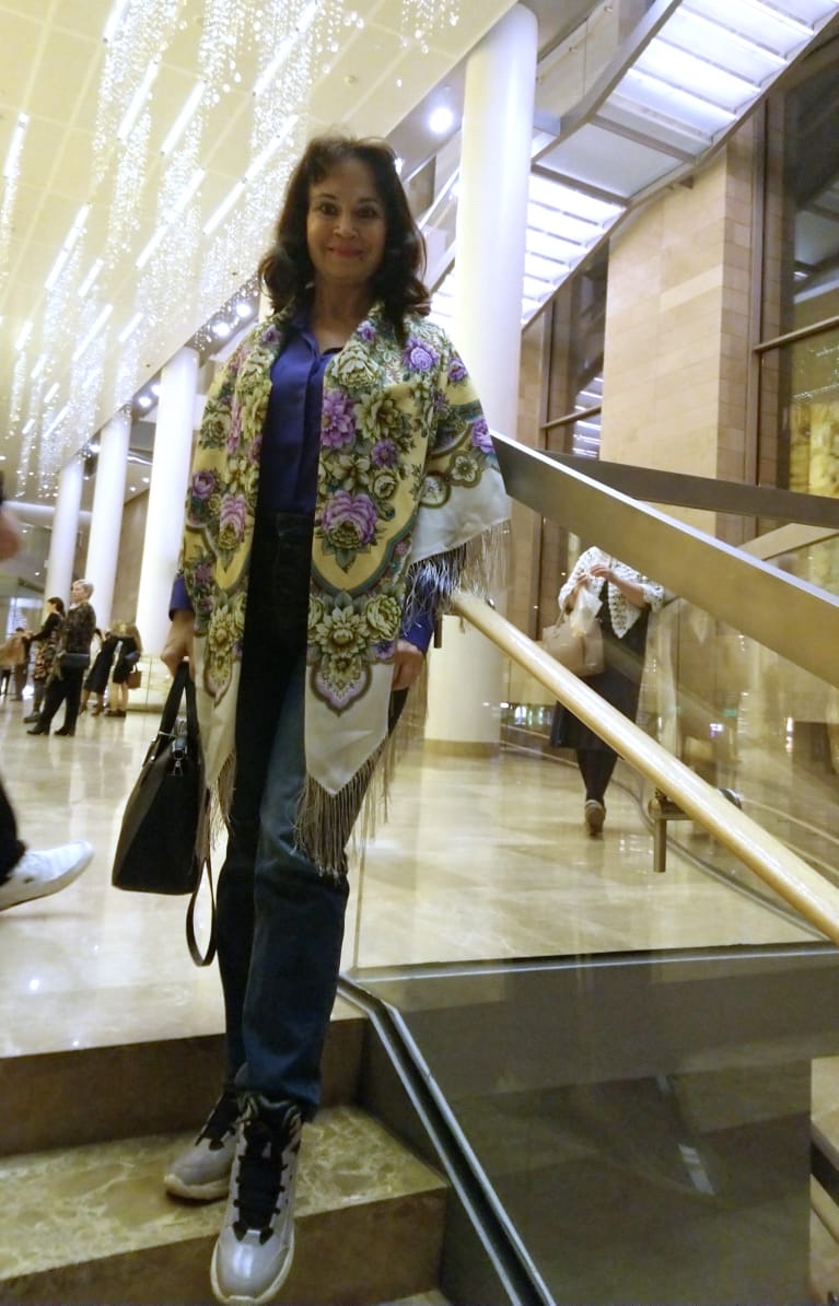 Демонстрируем ношение платков и шалей.