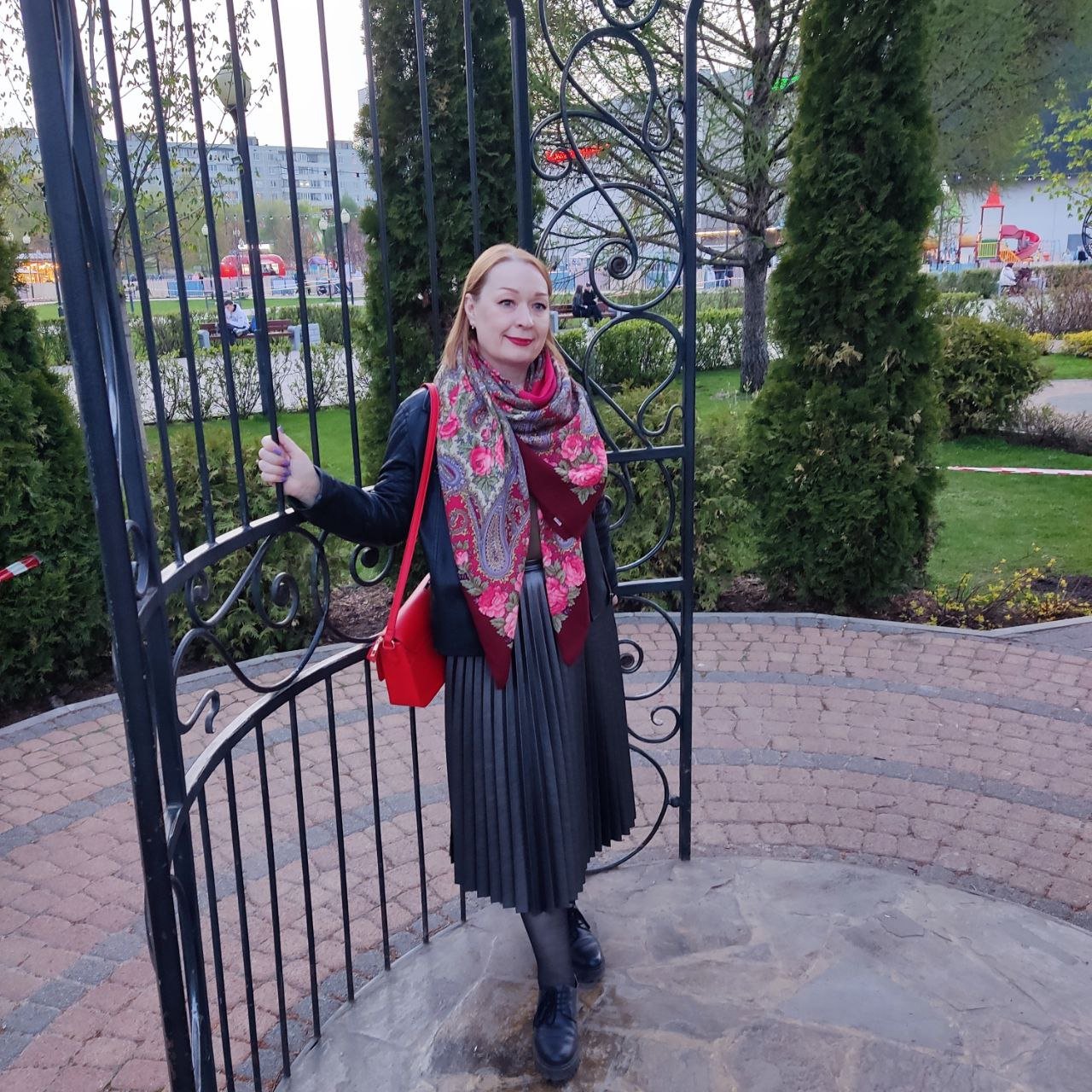 Nadezhda49 Мне так нравится, как вы современно показали "Час свидания". У меня сразу рука потянулась к сайту, чтобы посмотреть, доступен ли платочек в продаже. Правда, споткнувшись о современные ценники, решила довольствоваться пока давно купленным, но редко носимым, 15 видом этого красивого платочка.