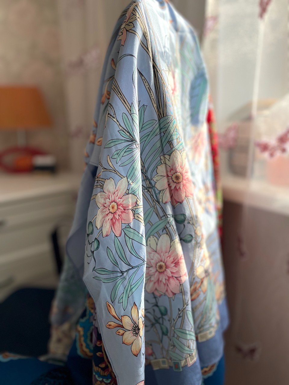 Первое знакомство с продукцией Мануфактуры и первая личная вещь - шёлковый шарф Маков день, подаренный папой к 8 Марта. И было это более 10 лет назад. С тех пор много что изменилось, в том числе и моё отношение к платкам, которые я не замечала. Но подарок бережно хранила и храню. А недавно оба шарфика встретились и "живут" вместе на моей полке.