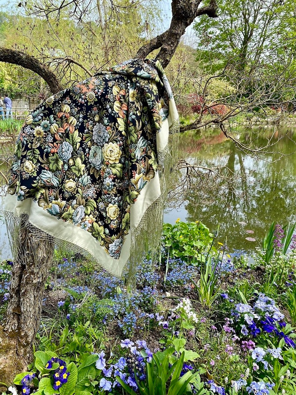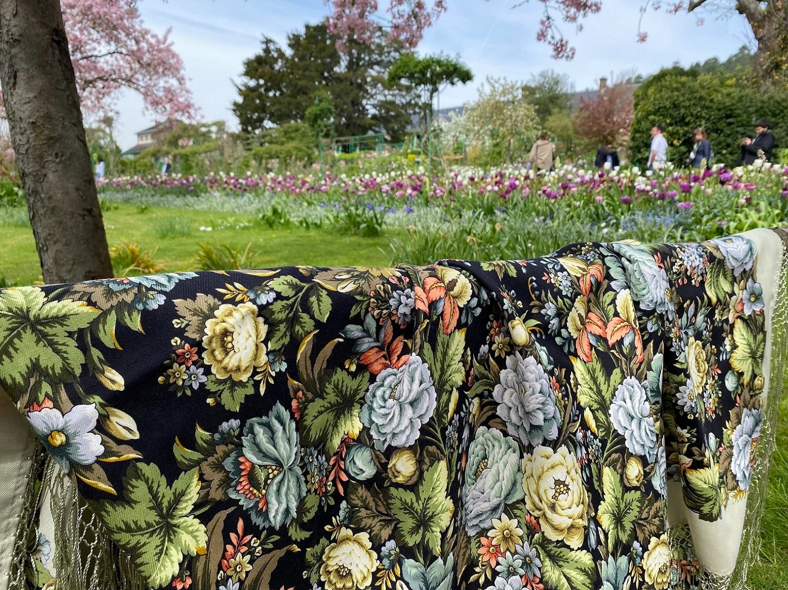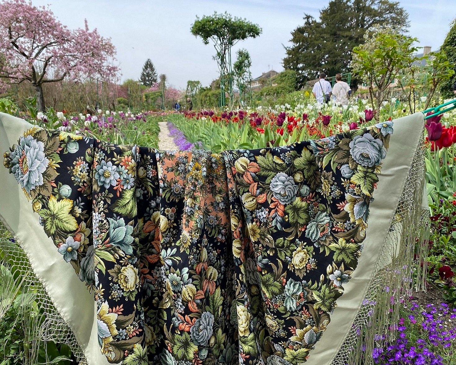 Диво дивное-2 в компании с комбинезоном сафари цвета хаки и персиково-розово-пудровыми лоферами вписалось в буйство весеннего обновления сада Клода Моне в Живерни как родное.