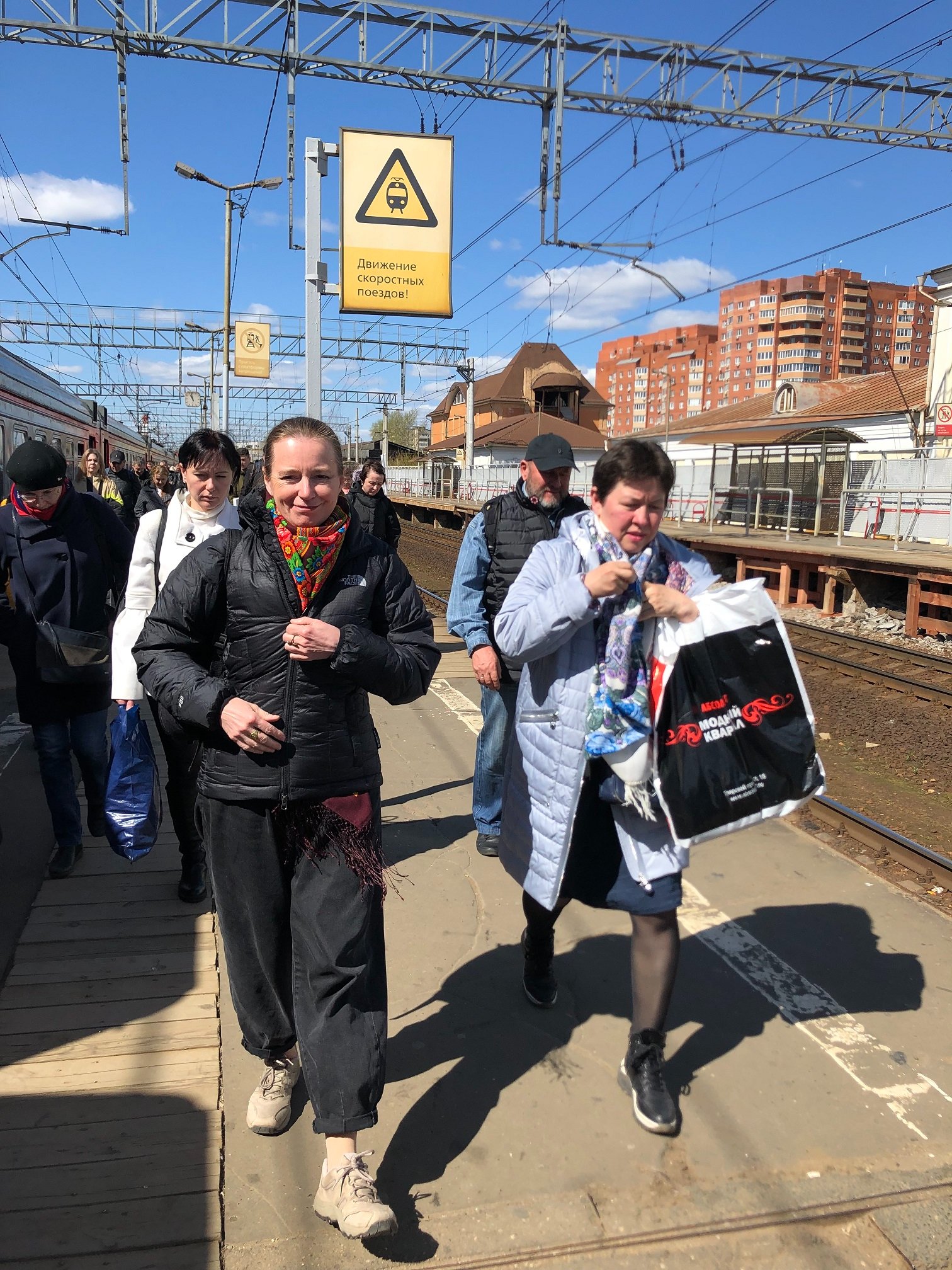 Удивительное дело, в этот день нам благоприятствовало абсолютно всё, не было ни дождя, ни снега, ни мороза, ни каких-либо железнодорожных катаклизмов, обычно сопровождающих нас в поездке в Павловский Посад. Солнце сияло, поезда ходили по расписанию, мы с Татой встретились на вокзале, во втором вагоне, и мужественно обороняли несколько остановок место для Ани, севшей позже на Нижегородской. За разговорами дорога прошла незаметно, и вот мы выходим на перрон.