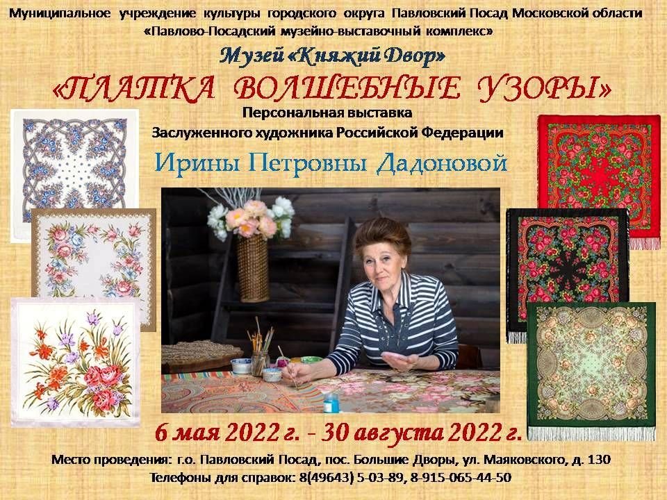 Дорогие дамы! 5 мая в 14.00 будет открытие выставки в Княжем Дворе, коллекция шалей и платков Ирины Петровны Дадоновой, которую подарила наша Тата ^% ^% ^% Звонила Галина Ивановна и нас приглашала. Приезжайте, кто сможет!