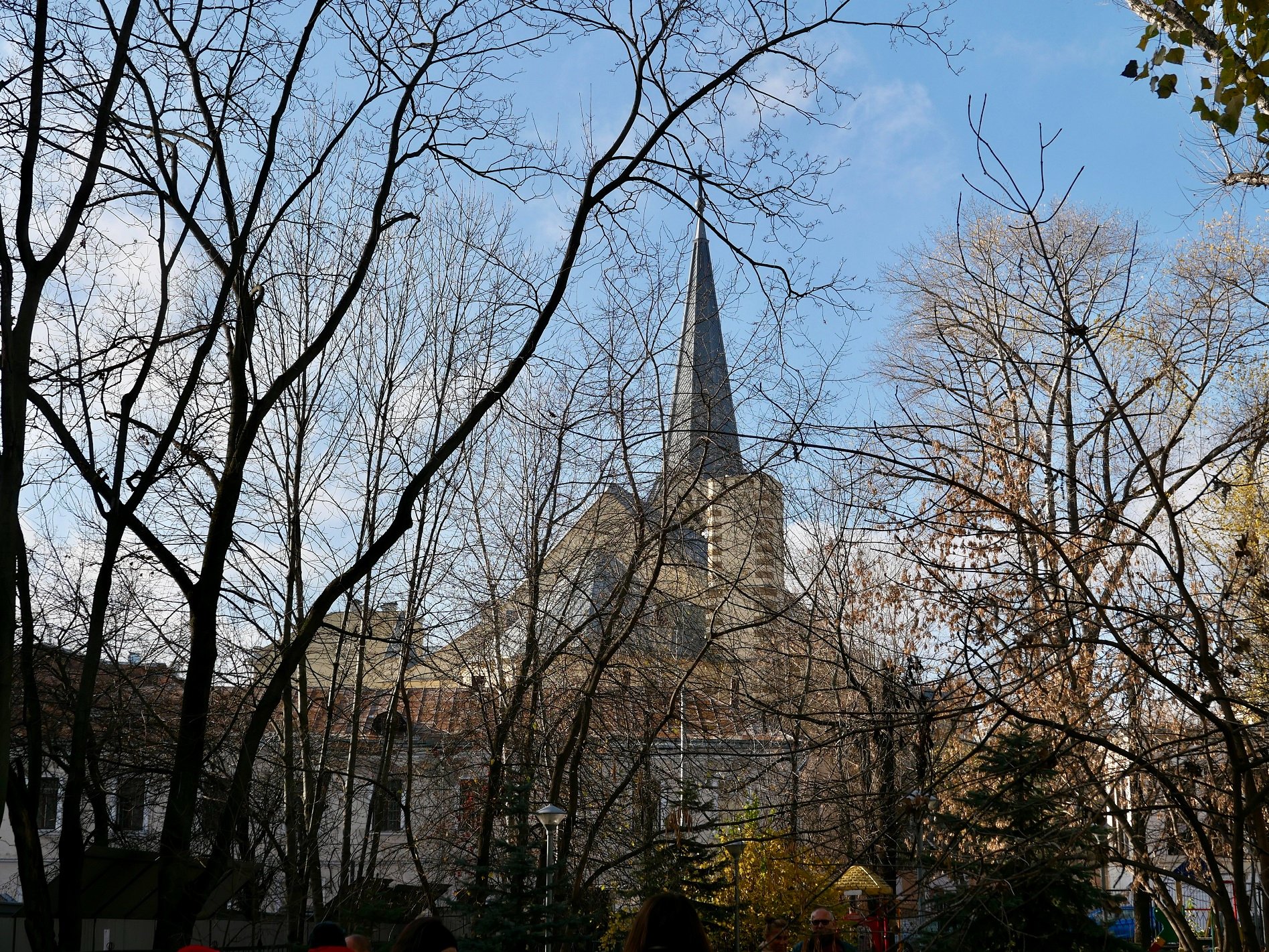 Тогда был солнечный день, и на деревьях еще кое-где сохранялась золотая листва. Из сквера виден лютеранский собор Петра и Павла.