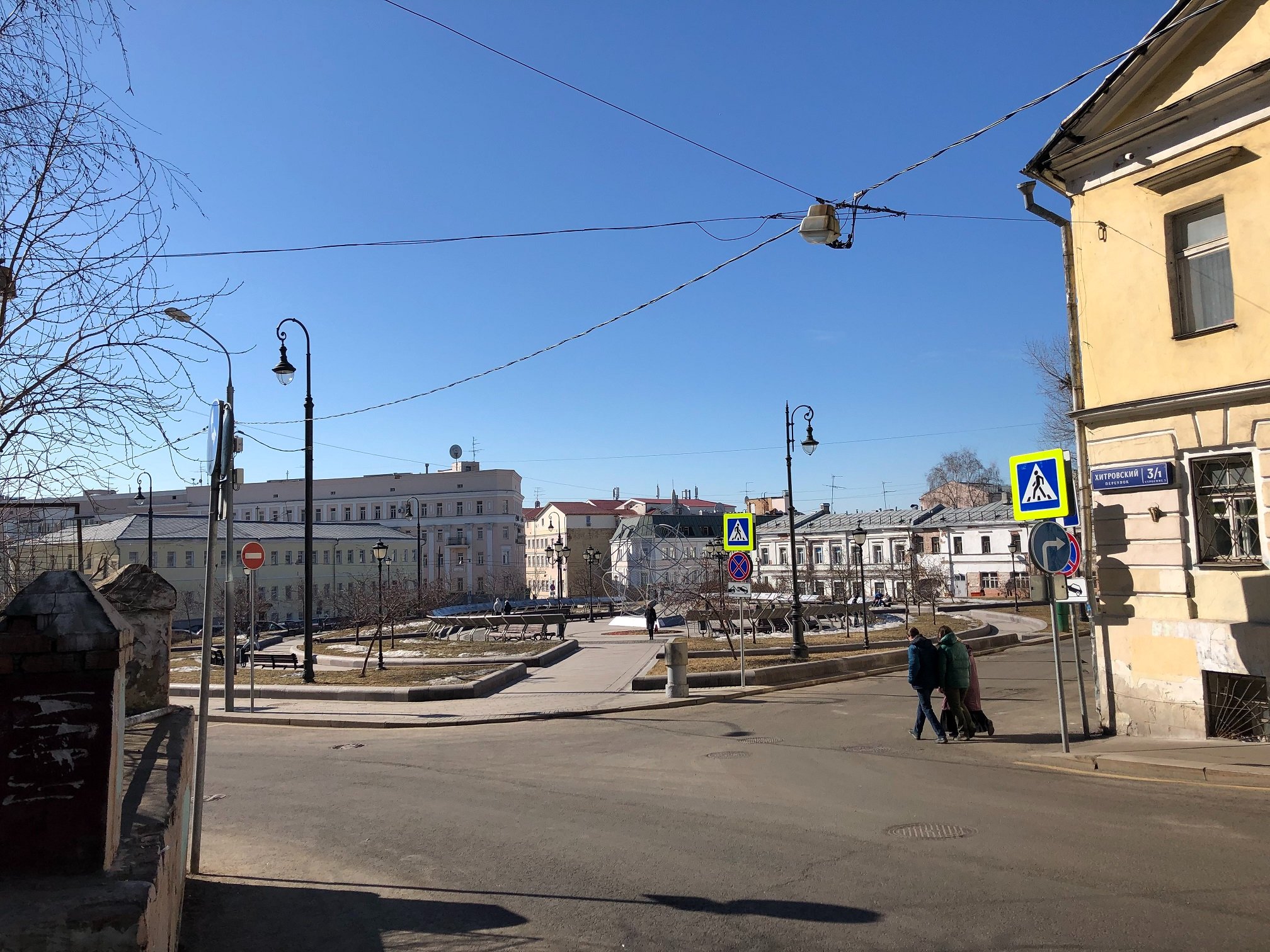 Отсюда мы отправляемся по Покровскому бульвару до Подколокольного переулка и с перекрёстка смотрим на открывшиеся виды. Потом спускаемся к Хитровской площади, той самой знаменитой ужасной Хитровке из Гиляровского.