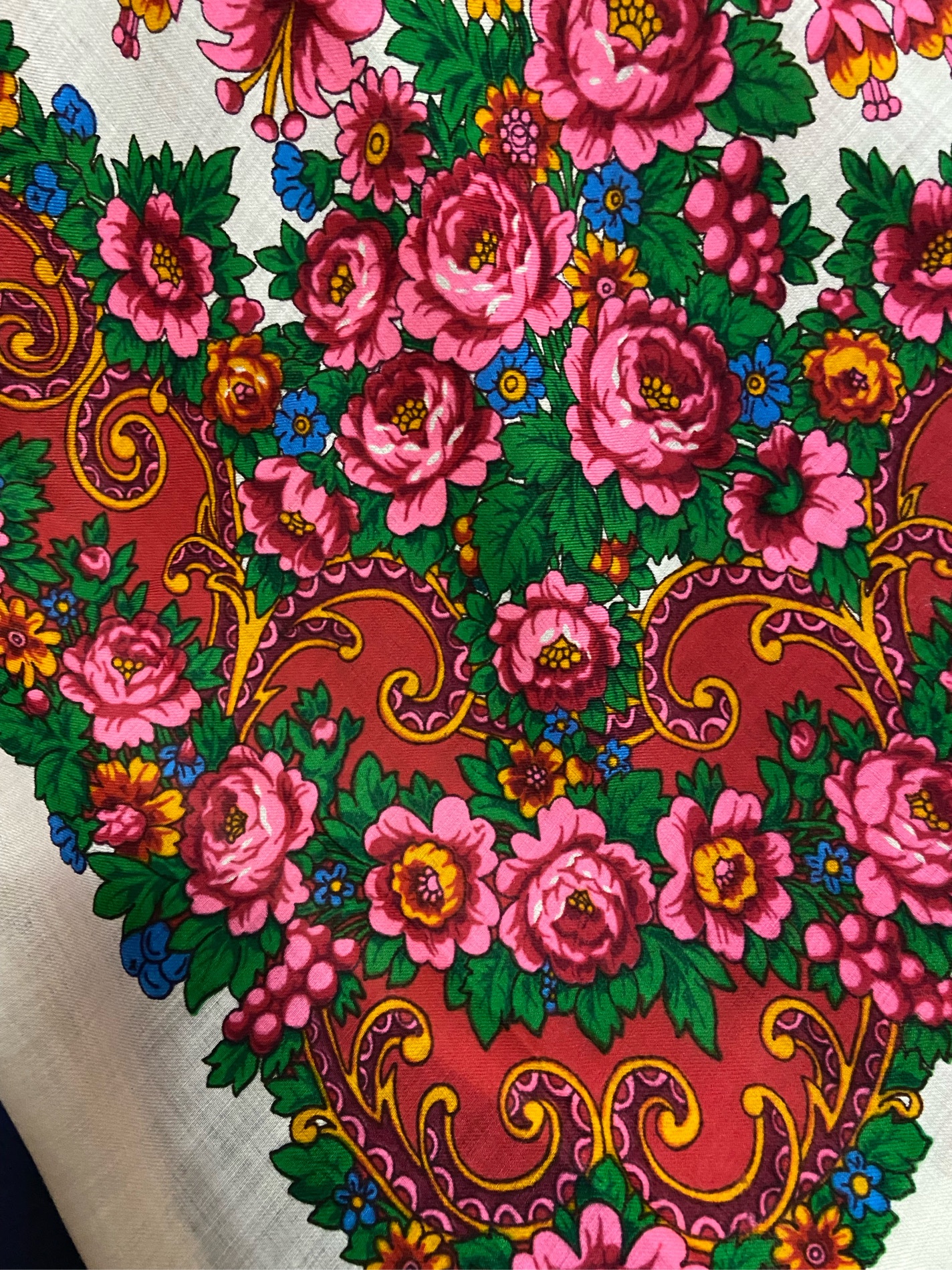 Здравствуйте! Еще загадка. Что за шаль на актрисе Екатерине Вилковой, в сериале "Гостиница "Россия?"" На обоих кадрах один и то же платок. Есть в сериале более крупным планом, мельком. Это шаль или платок 146-146. Склоняюсь думать, что это все таки шаль.
